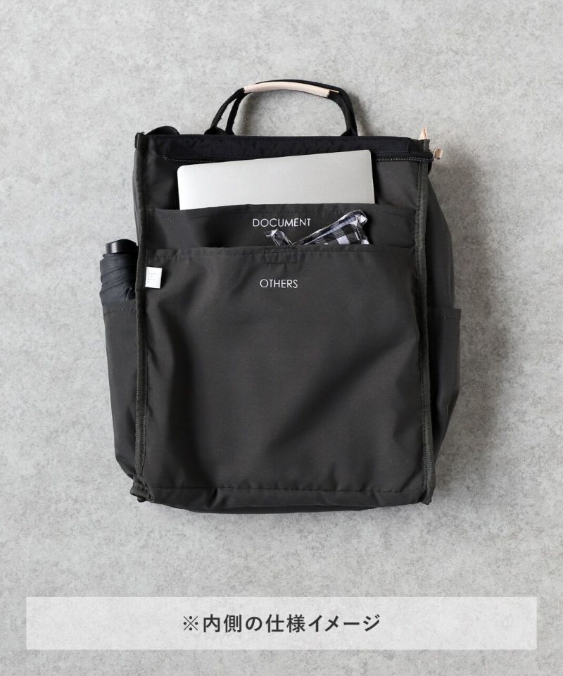 A4サイズがすっぽりと入るサイズ感で、書類やノートパソコンなどもスムーズに収納できます。