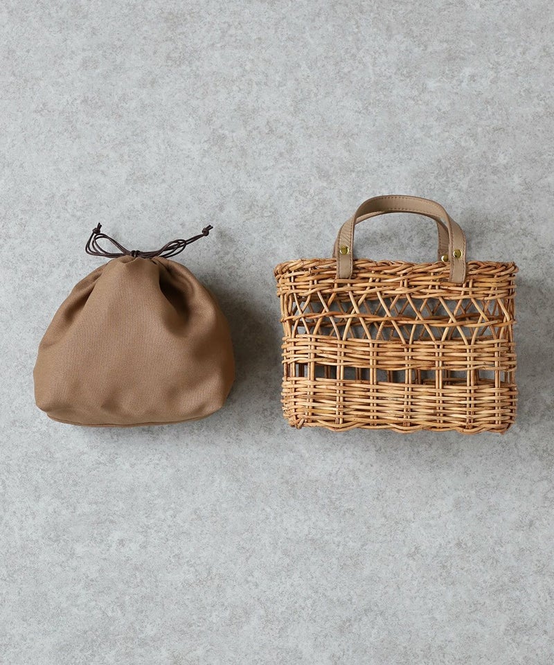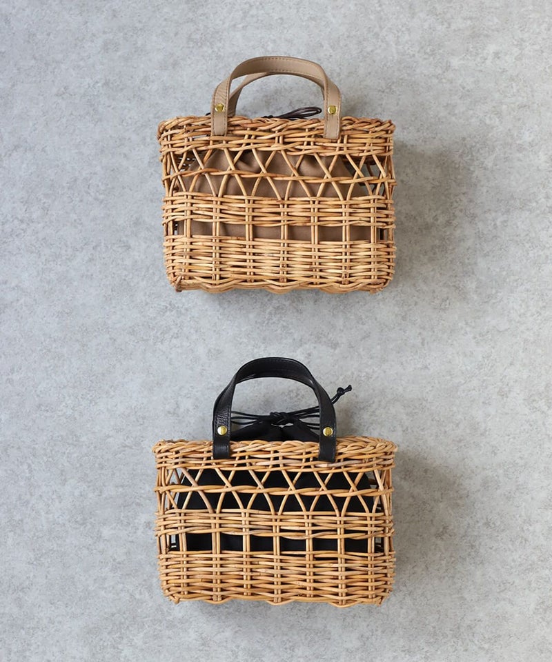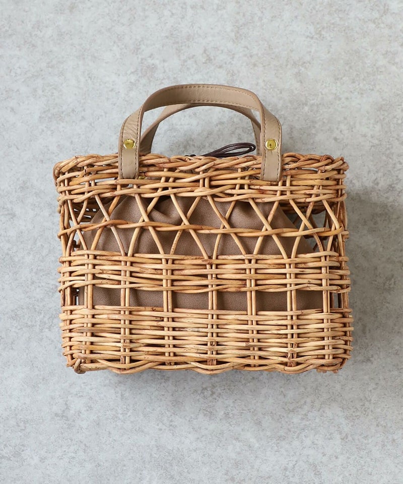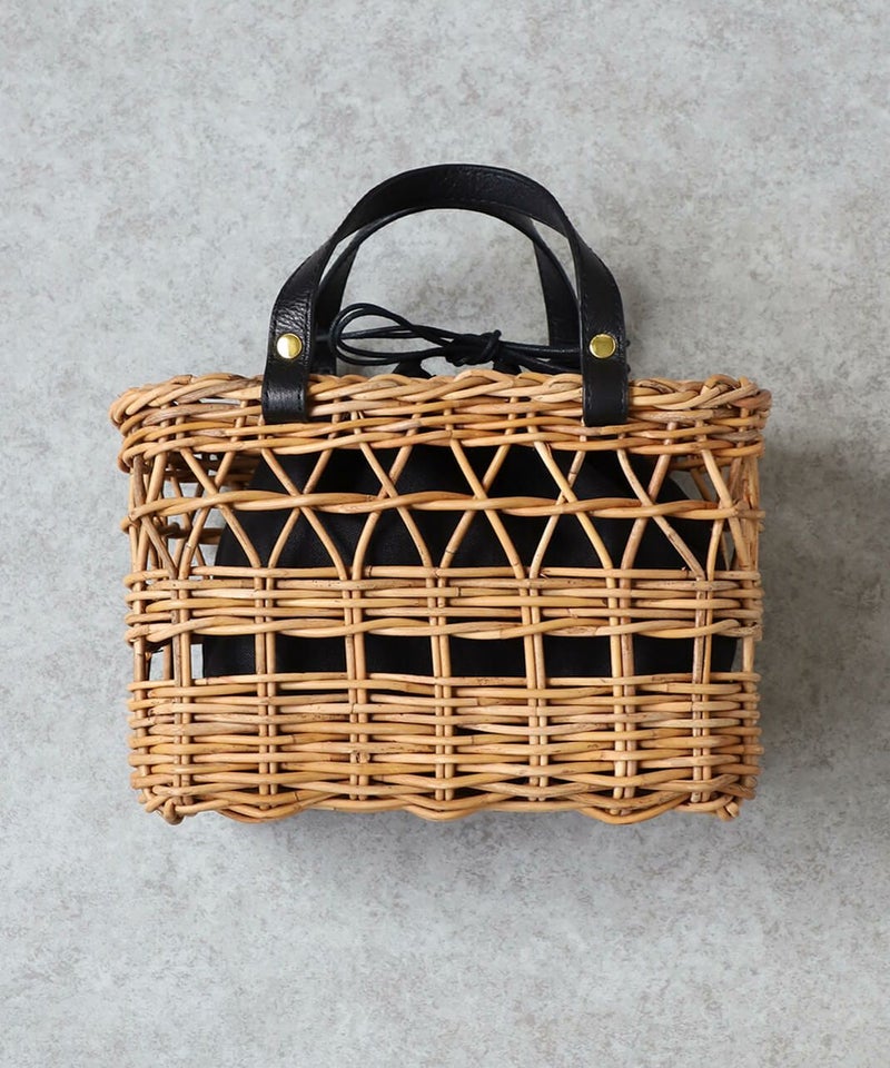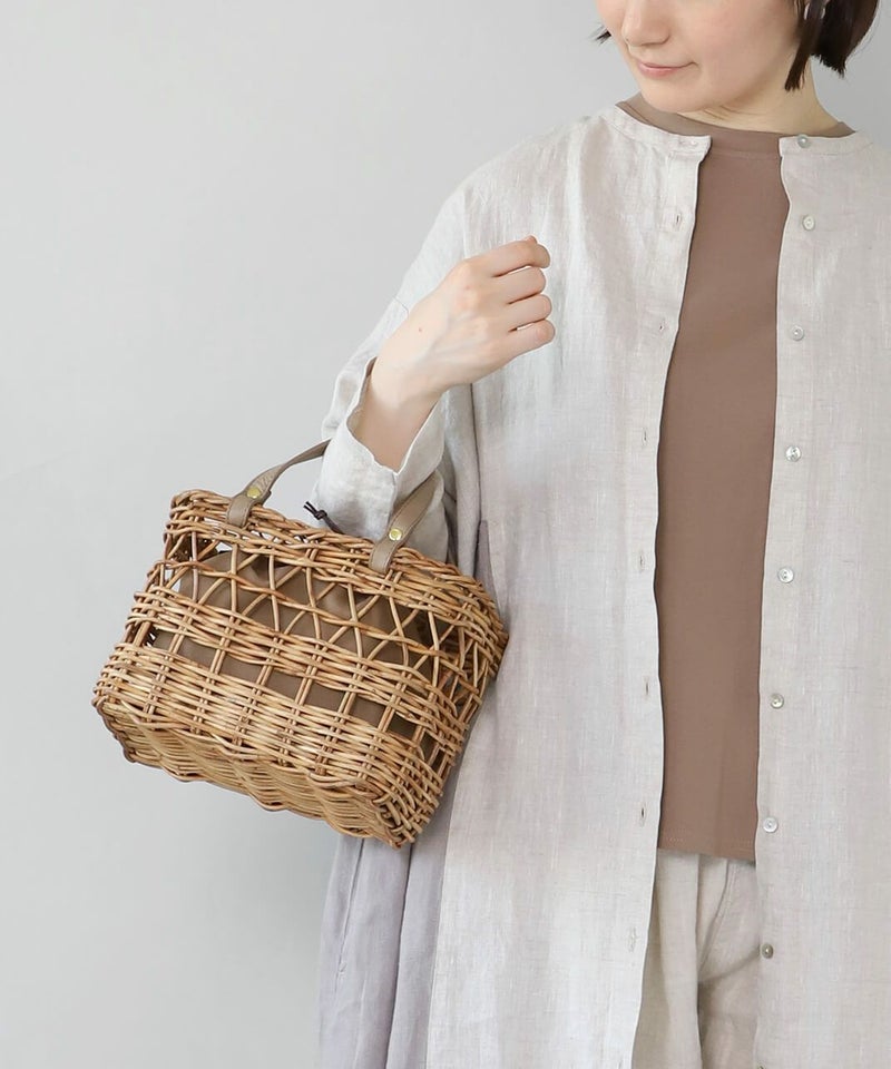 暖かくなるこれからの季節にぴったりなアラログバッグ。細やかな編み目とハンドル部分にあしらったレザーが上品な印象に。コンパクトなシルエットながら、お財布やポーチなどの必需品がしっかり入り、また、巾着が付いているのも嬉しいポイントです。きれいめやナチュラルなど幅広いコーディネートによく合います。