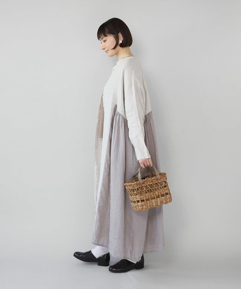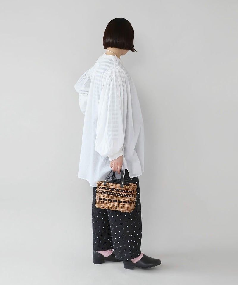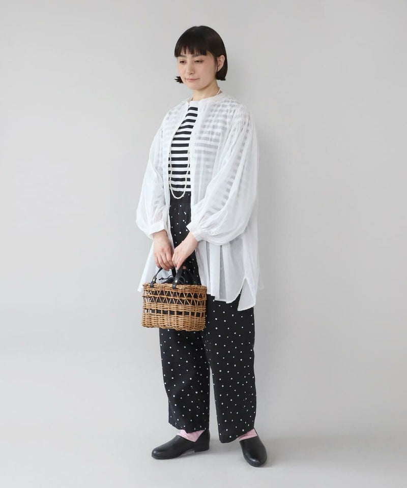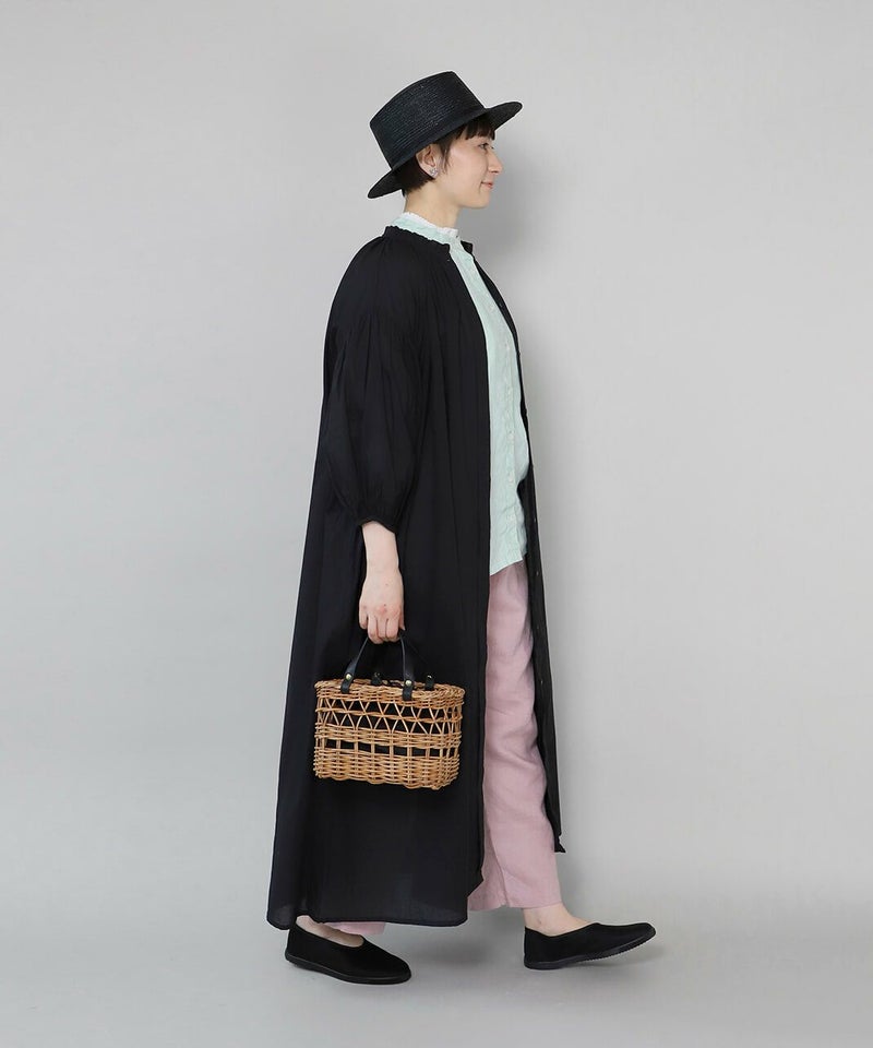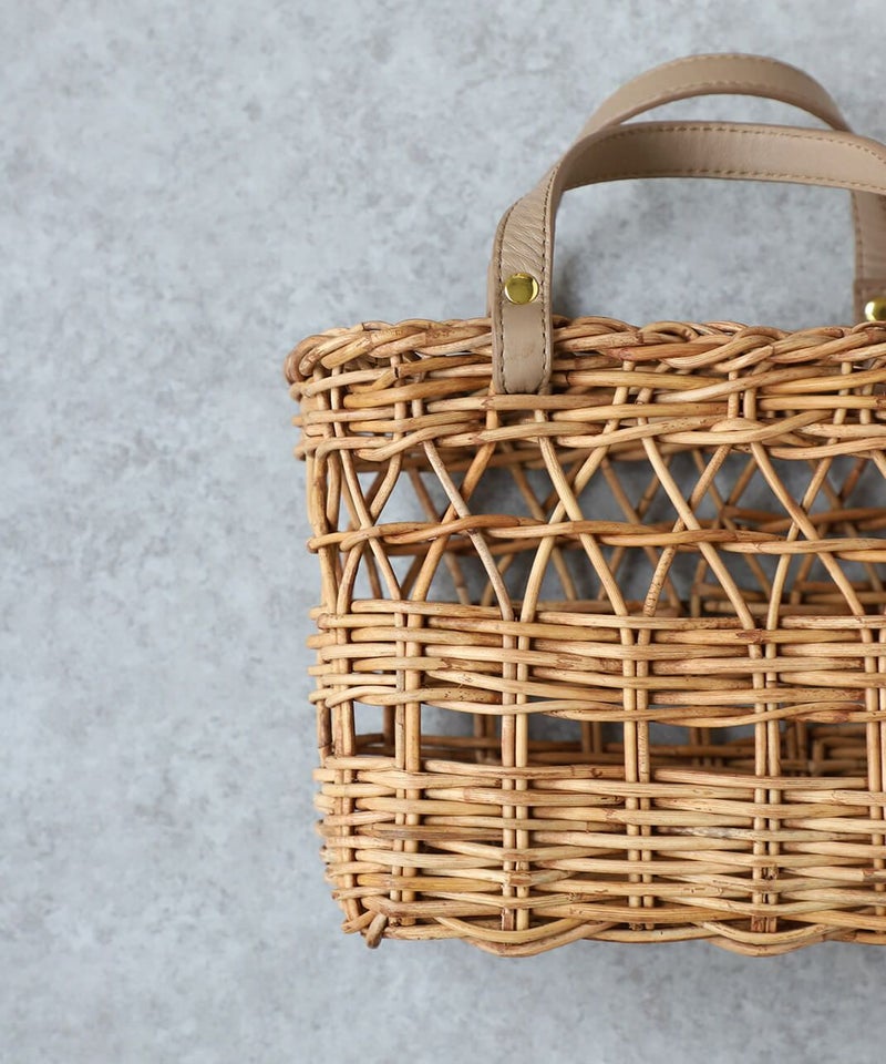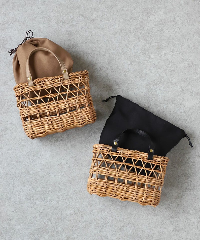 暖かくなるこれからの季節にぴったりなアラログバッグ。細やかな編み目とハンドル部分にあしらったレザーが上品な印象に。コンパクトなシルエットながら、お財布やポーチなどの必需品がしっかり入り、また、巾着が付いているのも嬉しいポイントです。きれいめやナチュラルなど幅広いコーディネートによく合います。