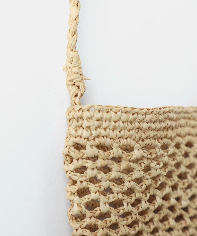 透かし編みが涼しげなラフィア素材のポシェット。 ナチュラルな色味なので、洋服にはもちろん和服などいろんな服装に合わせやすいです。 スマートフォンや貴重品など、ちょこっと持ちたいときに重宝します。