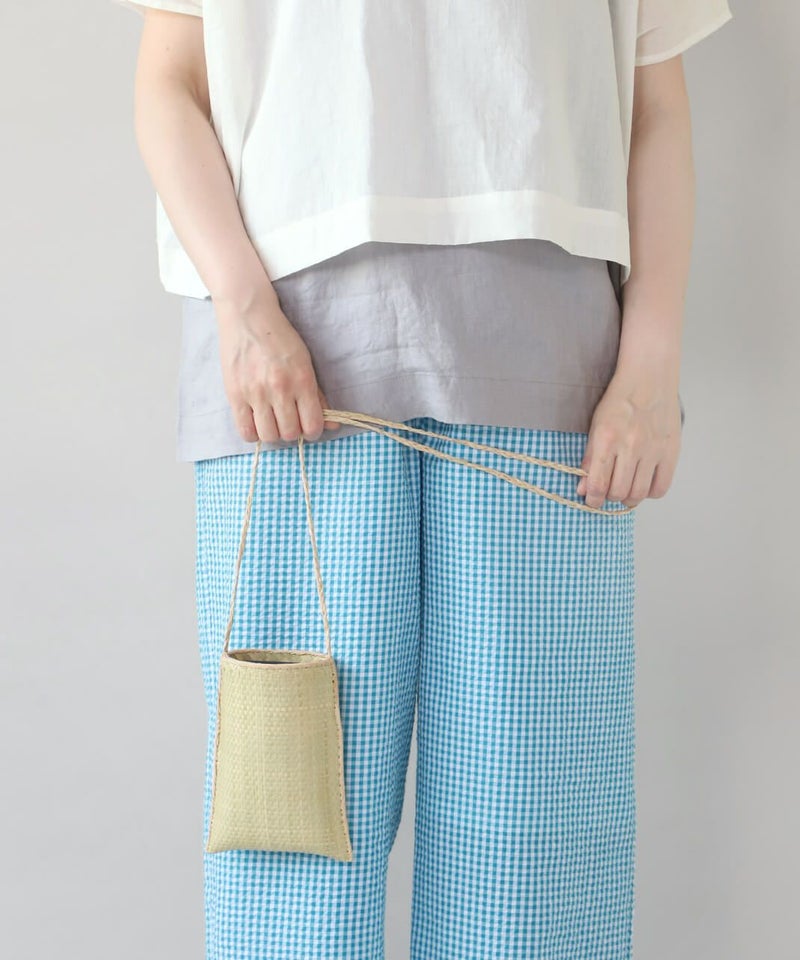 水草で編んだ涼しげな雰囲気のポシェット。 密度の高い編みこみが特徴的で、使い込むごとに馴染みんでいきます。 スマートフォンや貴重品など、ちょこっと持ちたいときに重宝します。