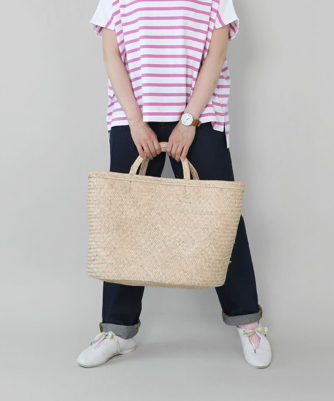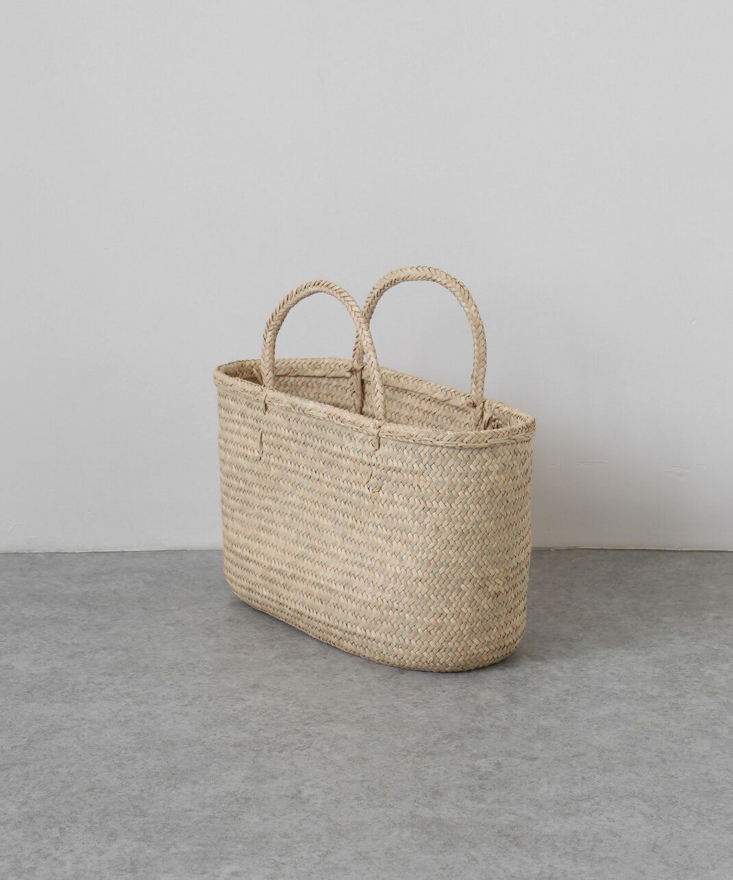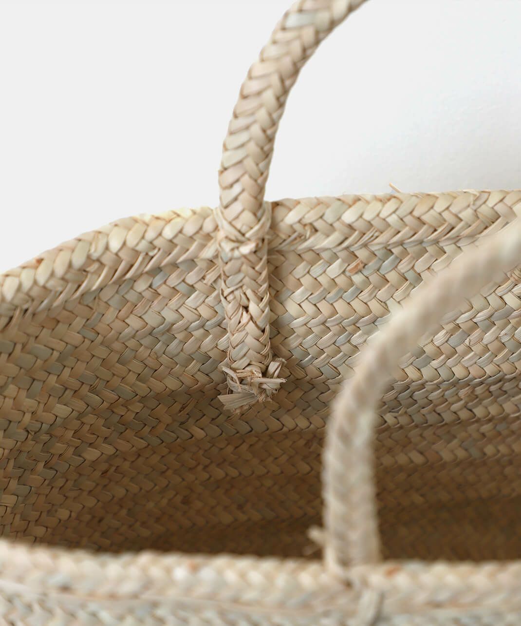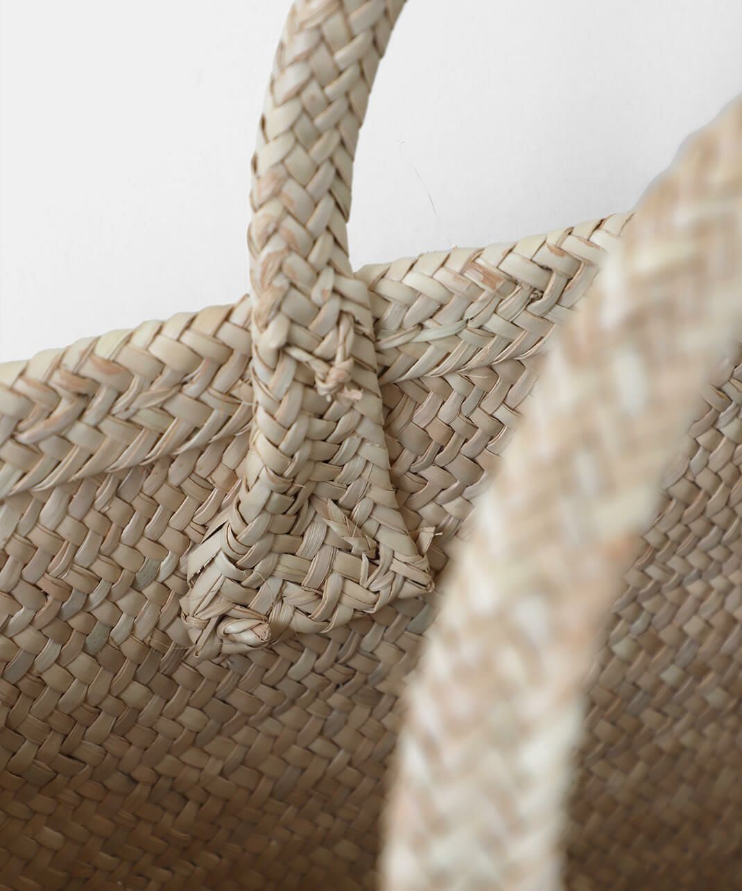 ハンドルにも本体と同じ椰子の葉を使用し、統一感のある仕上がりになっています。