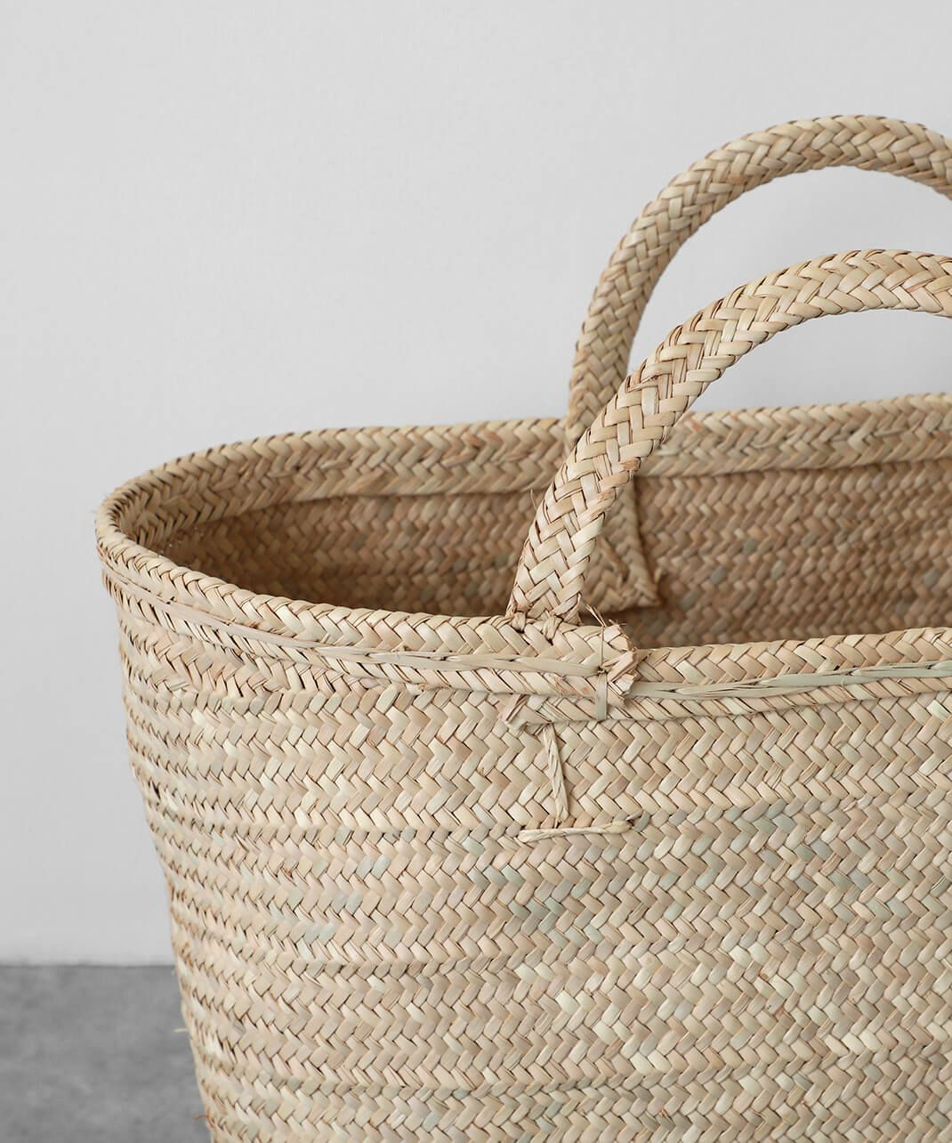 椰子の葉を丁寧に編み込んだバスケットは丈丈夫で耐久性に優れているので長くお使いいただけます。
