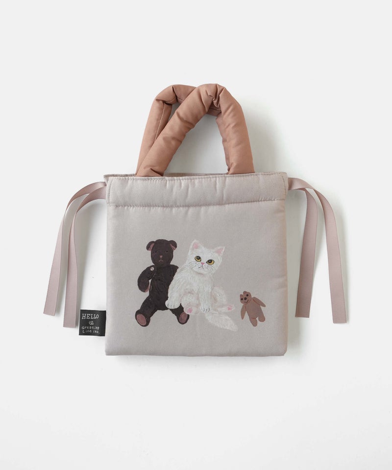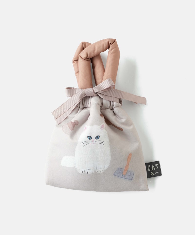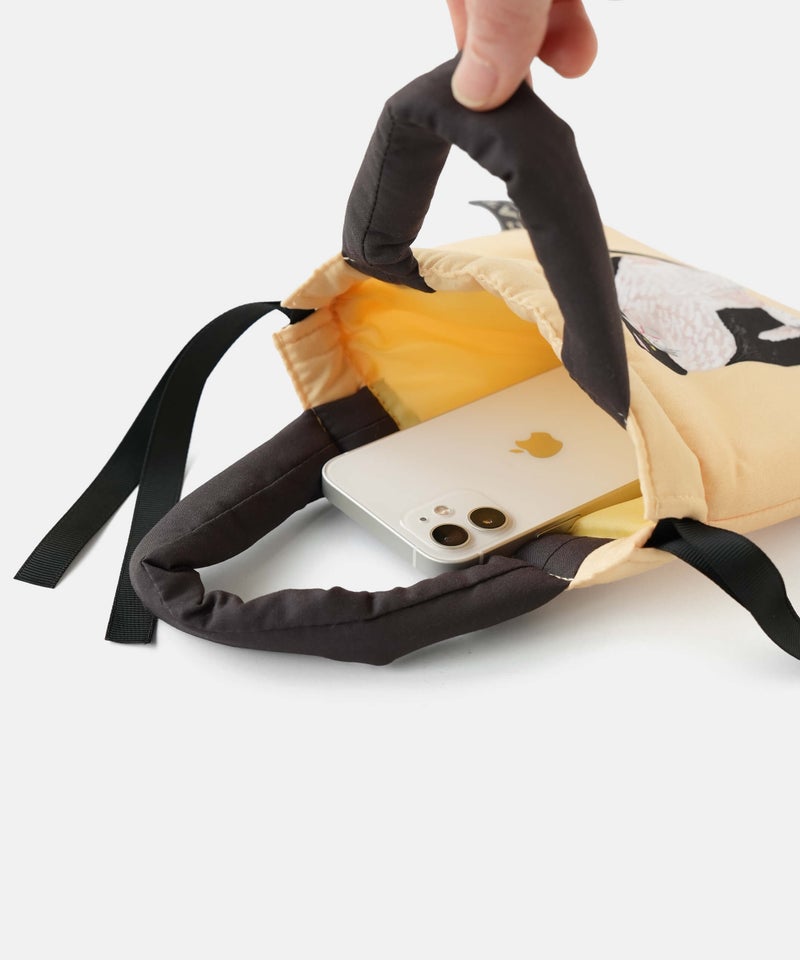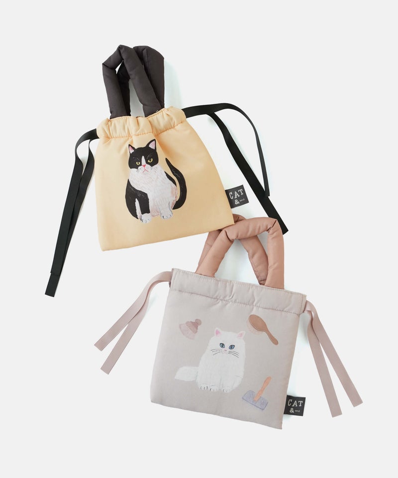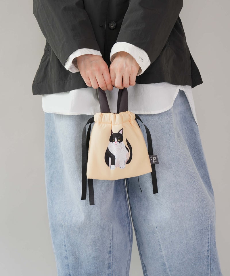 イラストレーター・そで山かほ子の“ネコと◯◯”をテーマにした『CAT&(キャットアンド)』雑貨・ステーショナリーシリーズ。優しいさわり心地の中綿入り巾着ポーチです。ふかふかの持ち手とビビッドカラーのリボンがかわいいポイント。ガジェットアイテムなどを入れるのにもぴったりです。