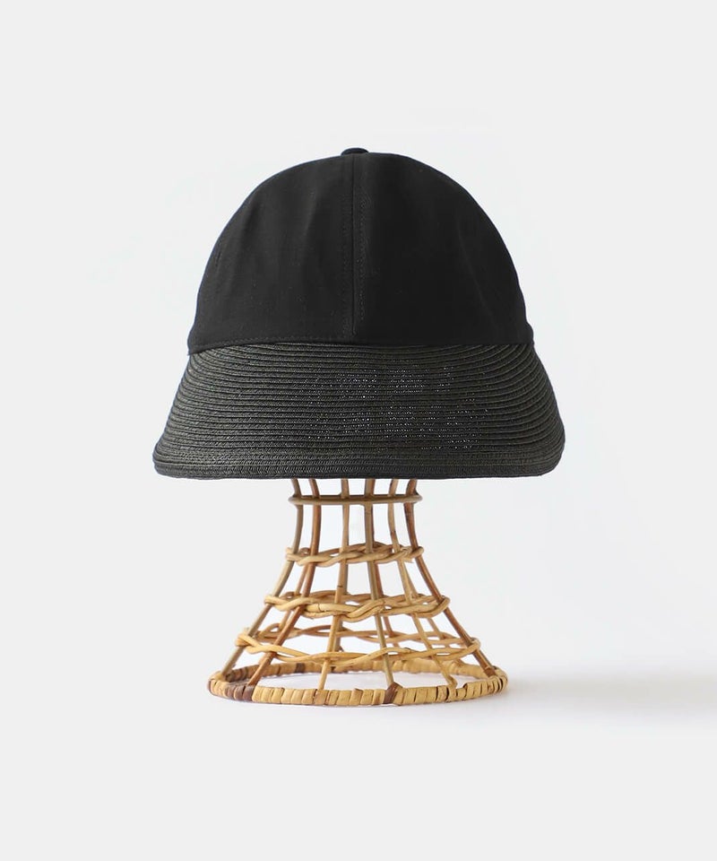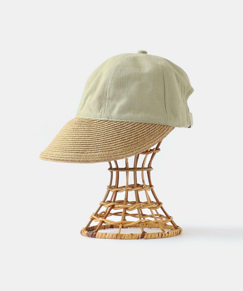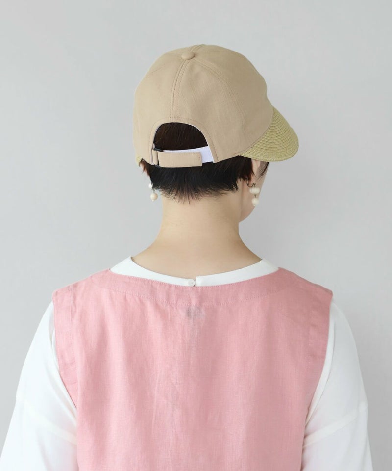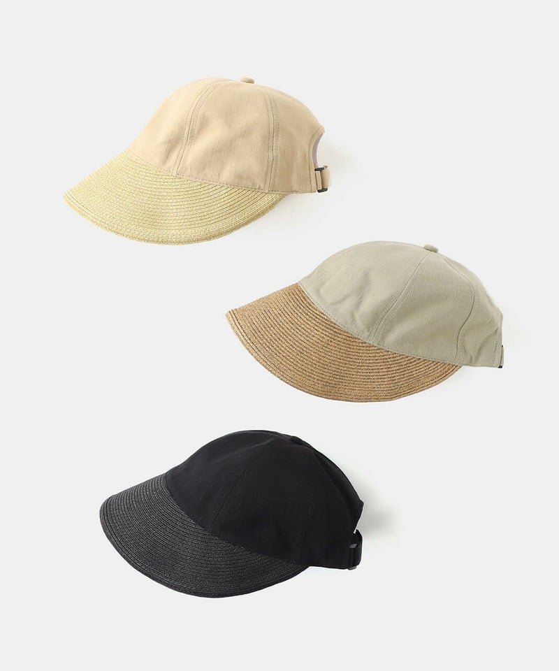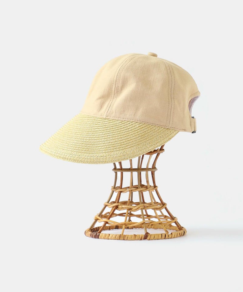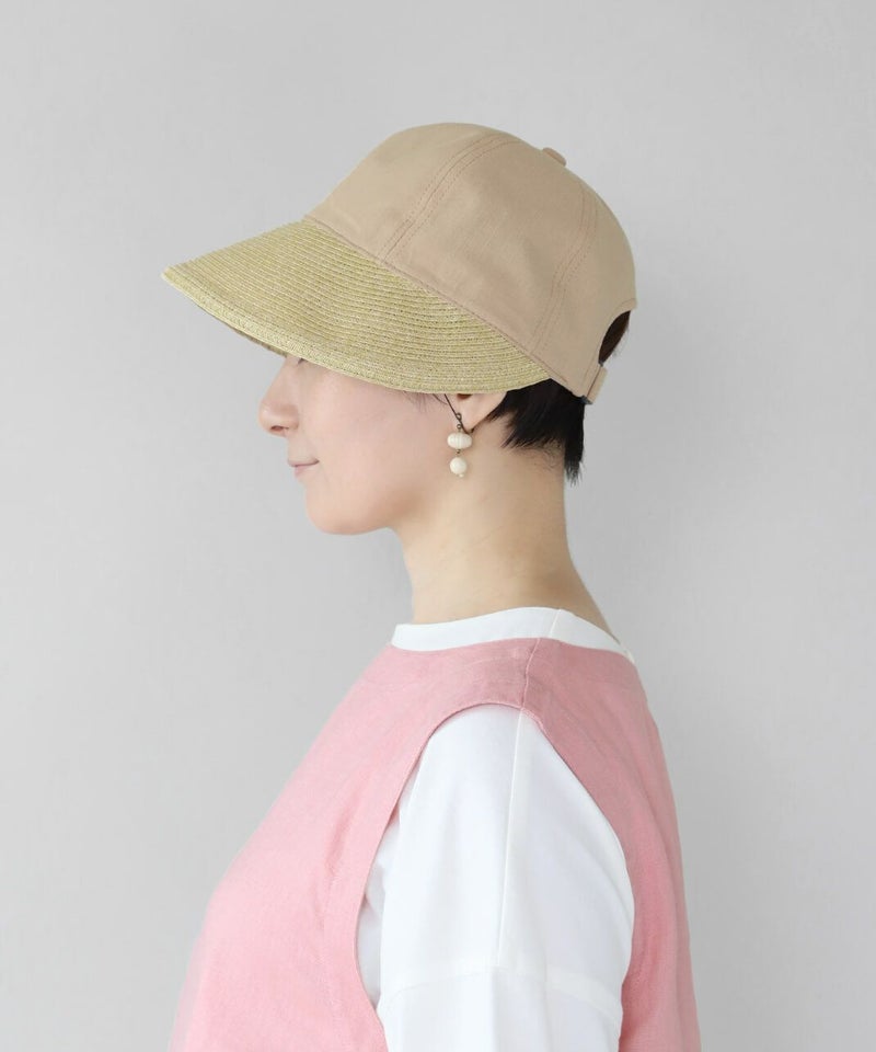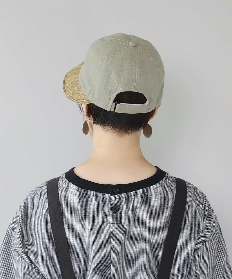 夏らしい素材切り替えのキャップ。