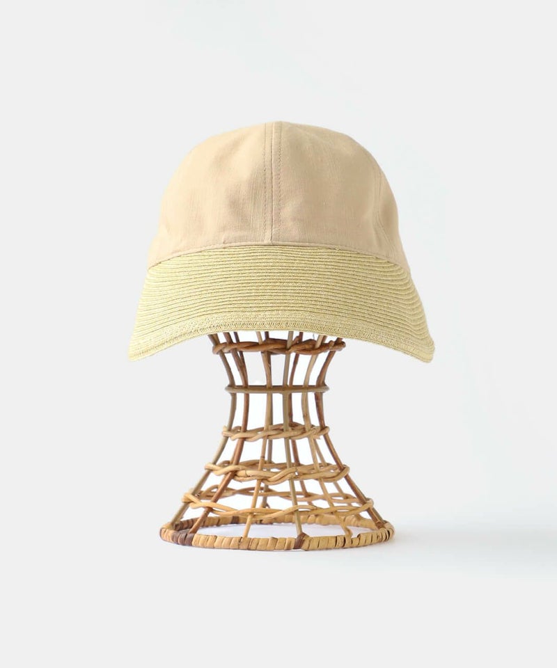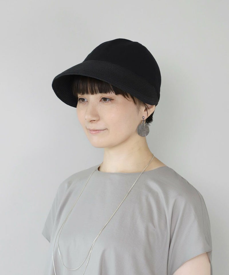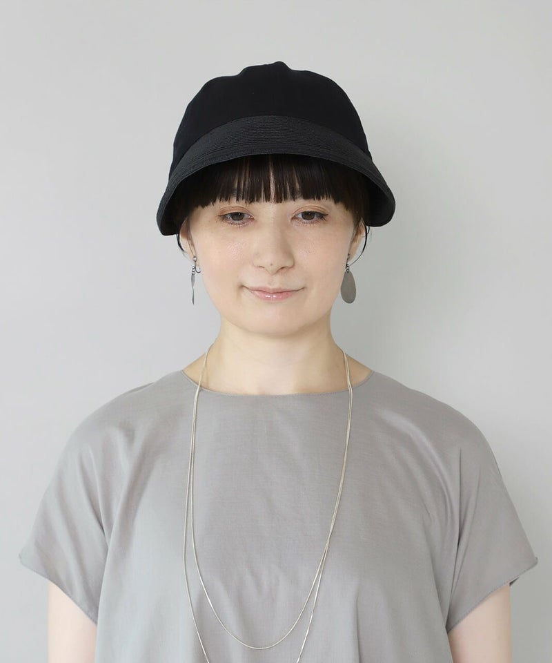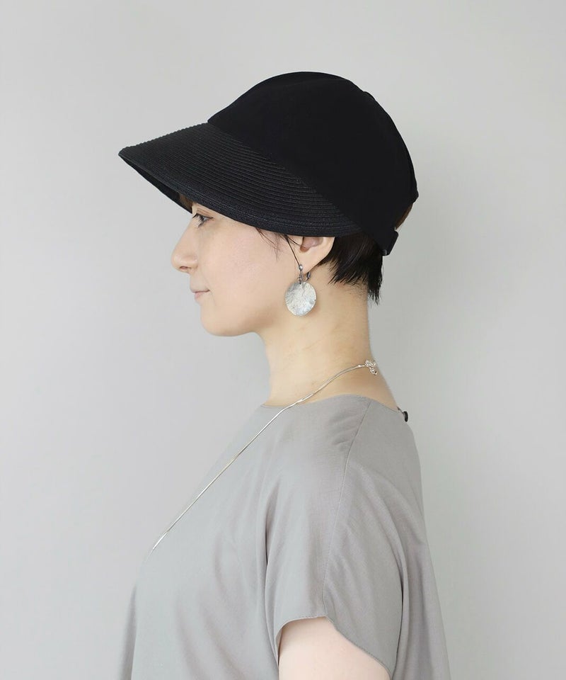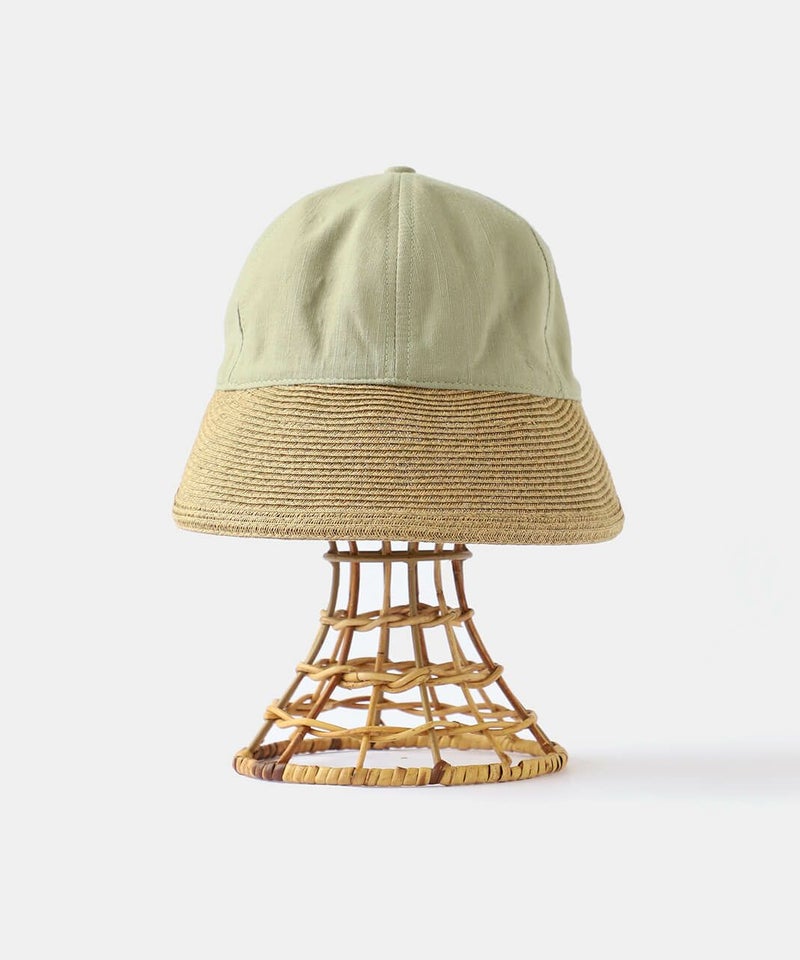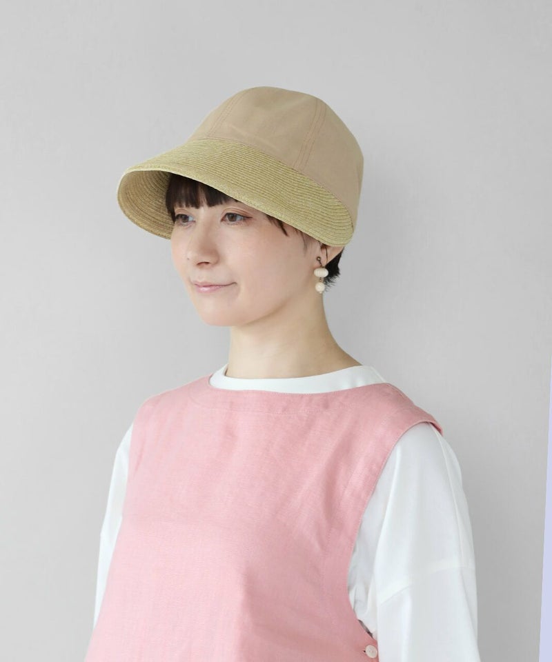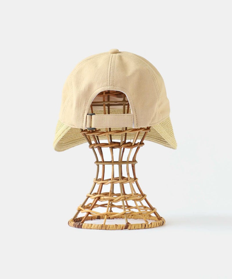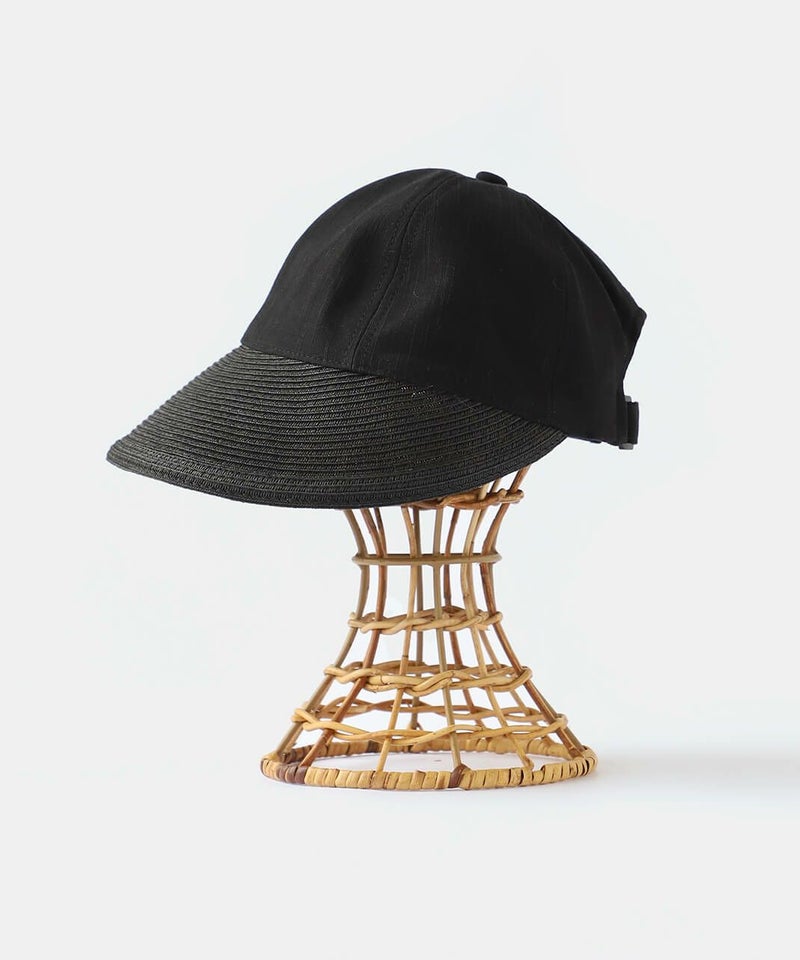 夏らしい素材切り替えのキャップ。