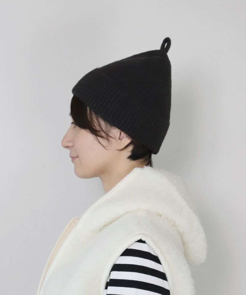 トップのループがさりげなく愛らしいニット帽は、大人の遊び心あるデザイン。シンプルながらもコーディネイトのポイントになるアイテムです。ベーシックなカラー展開なのでどんなスタイルにもよく合います。ペットボトルを粉砕し再び使える「資源」として再度加工されたリサイクル素材を使用しています。石油から製造されるプラスチックの消費量を低減し、限りある資源を少しでも大切にした環境に優しいニットです。