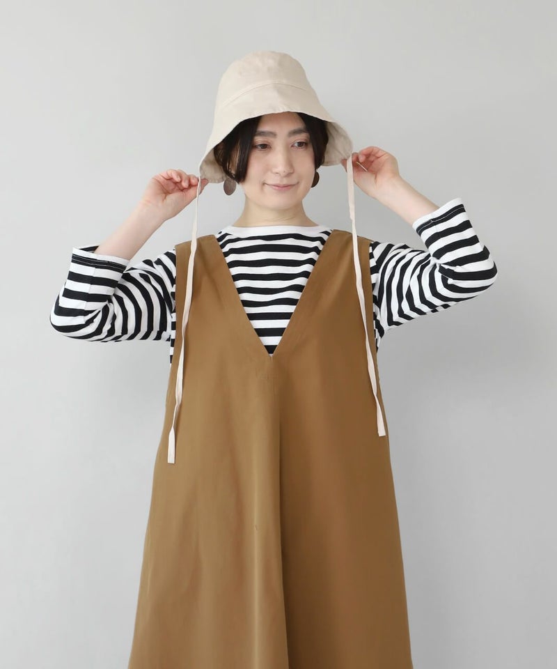 紐は顎下で結んで固定しても結ばずに垂らしてもデザイン性を楽しめます。