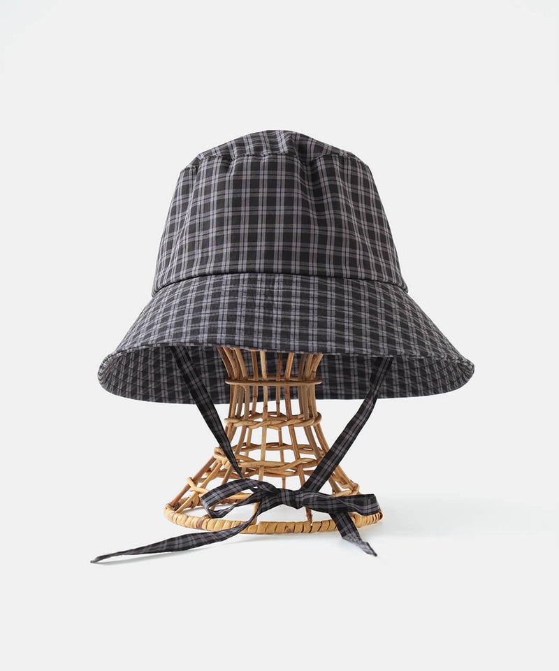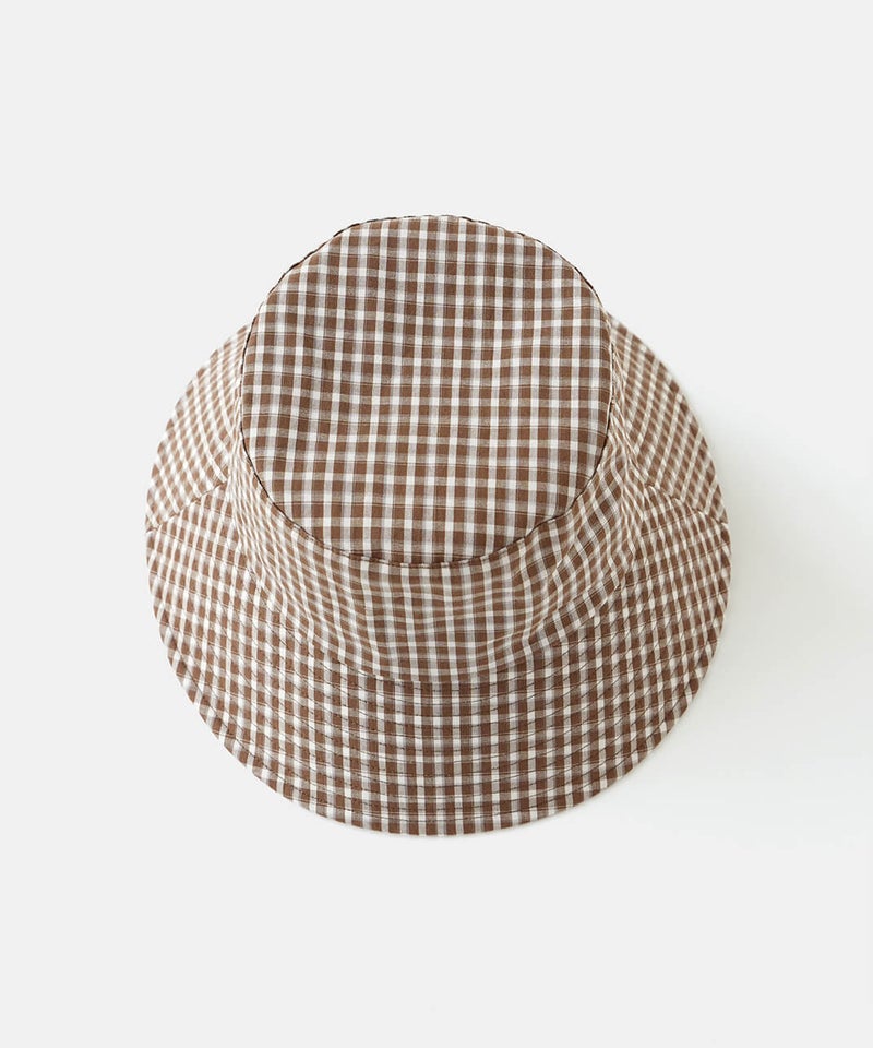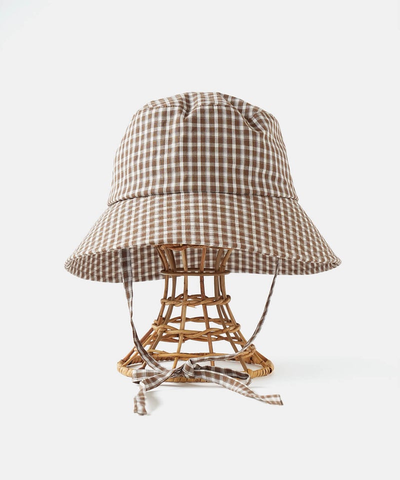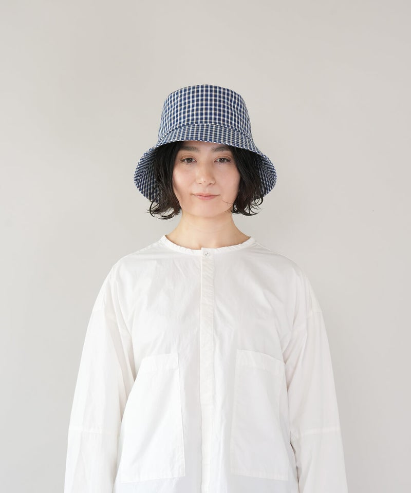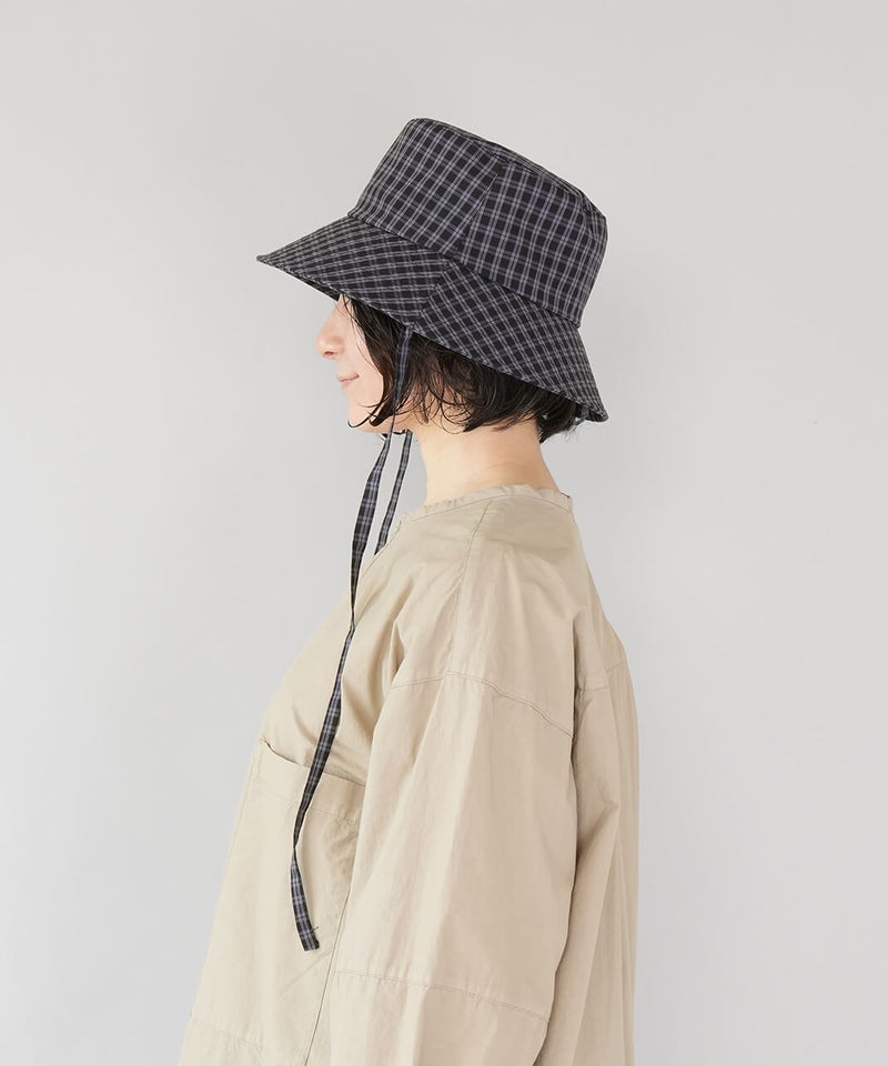さわやかなギンガムチェックが印象的なハットです。リボンのように結んで使えるテープは取り外し可能で、好みに合わせてお使いできます。日差しから守る深めのツバは、前を少し折り曲げたり、スタイリングを楽しめる春らしい帽子です。