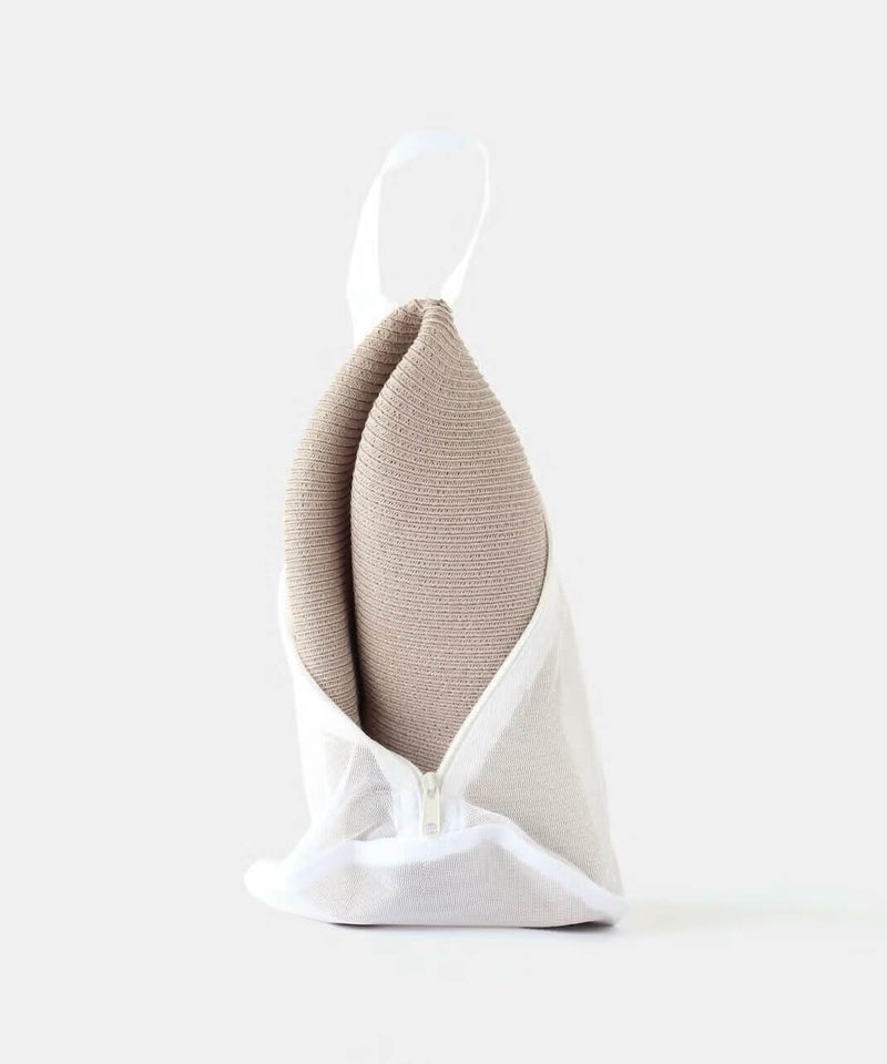 気になったときにいつでもお手入れできる、ウォッシャブル仕様のハット。専用の洗濯ネットが付属しているため、ご自宅の洗濯機で洗える日常使い向きのアイテムです。広めのつばで気になる紫外線をしっかりガードしてくれ、つばを囲むワイヤーを使えば、角度をつけたり折り返したりと自分好みの形に変身。被り心地の微調整がきくように、内側には細ヒモを通しています。室内ではバッグの中にコンパクトしまえて便利な、折りたたみやすいやわらかな素材を使用。