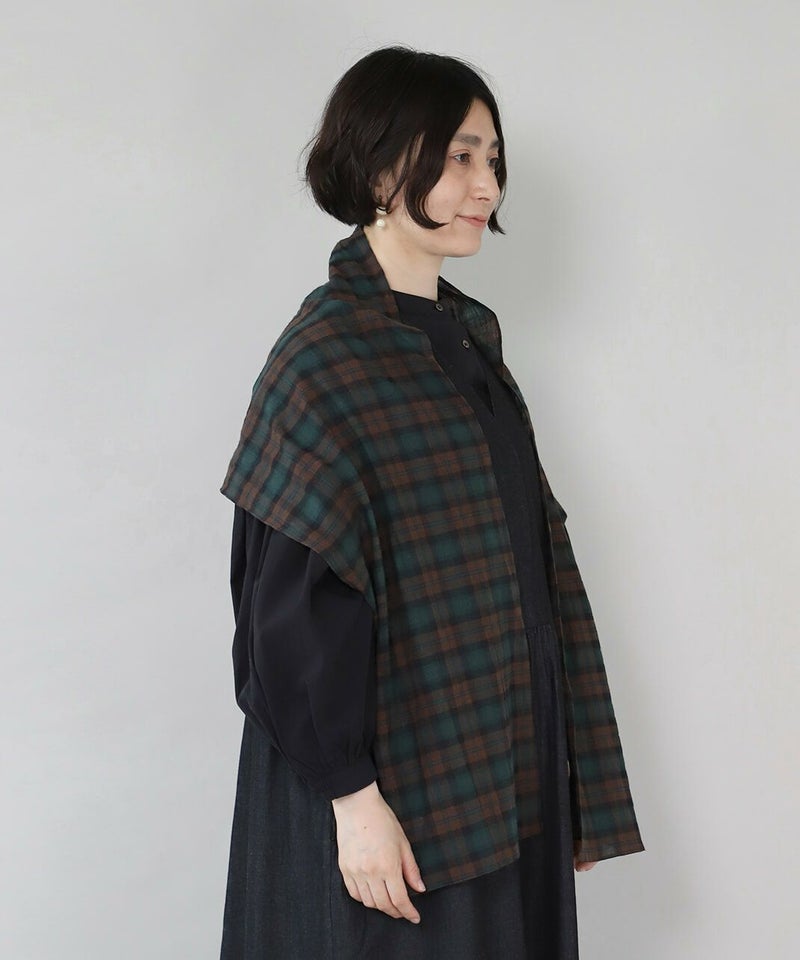 落ち着いた色味のチェックストール。