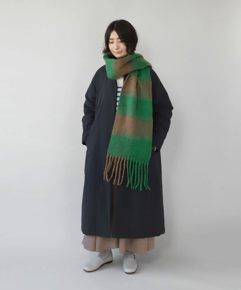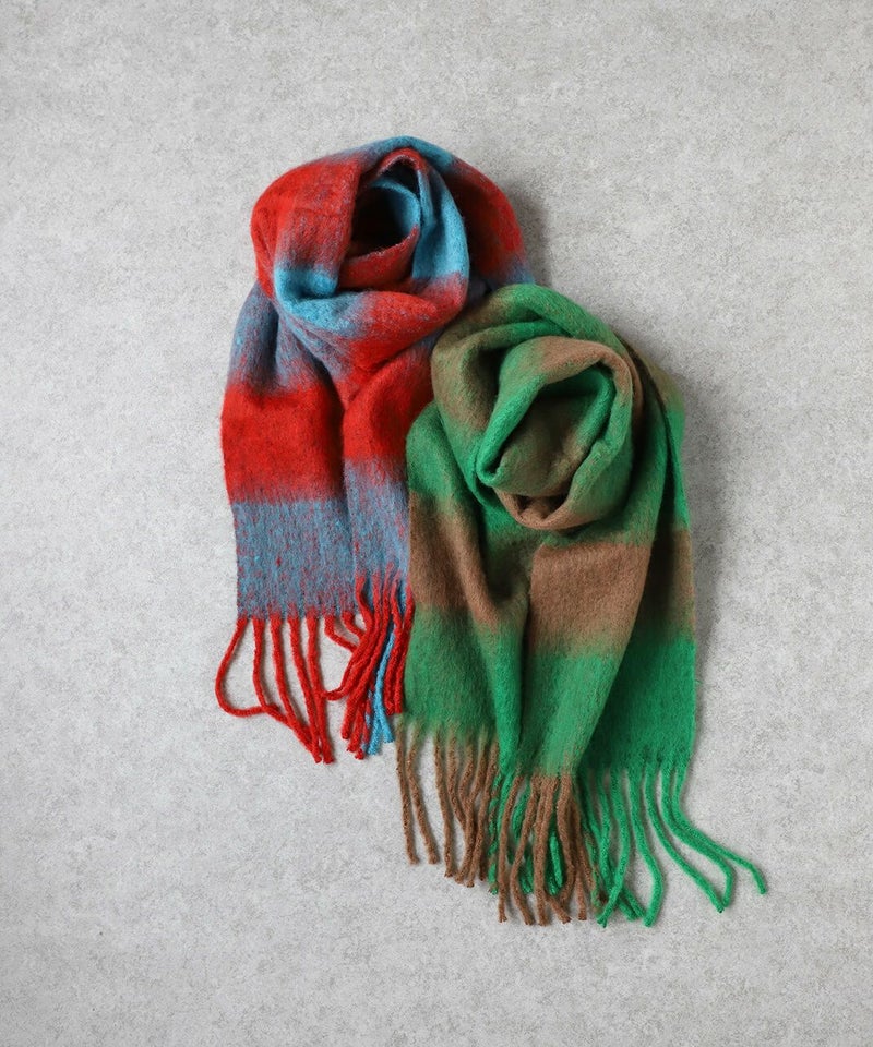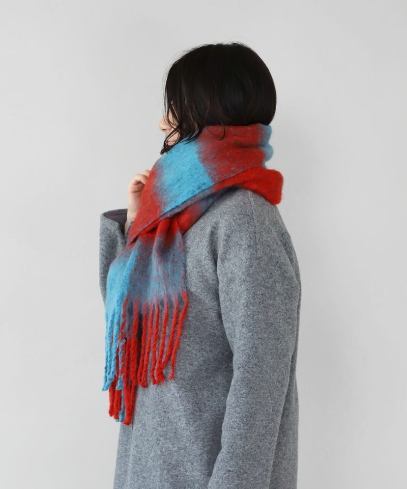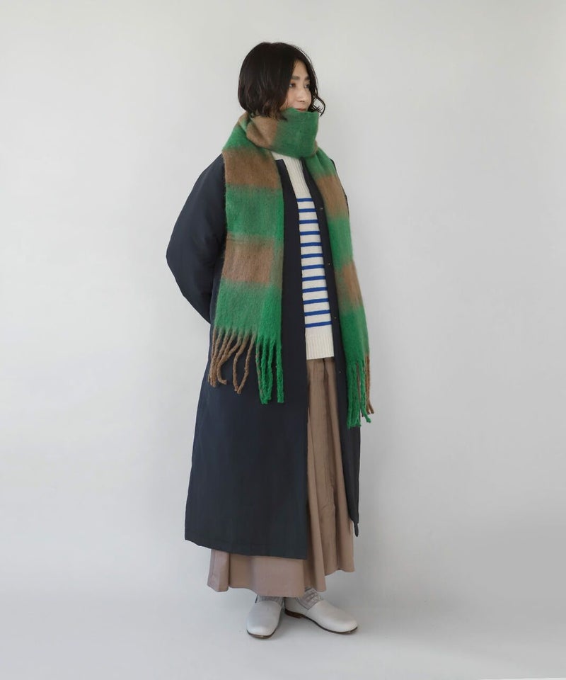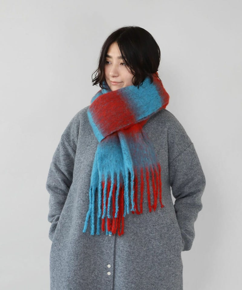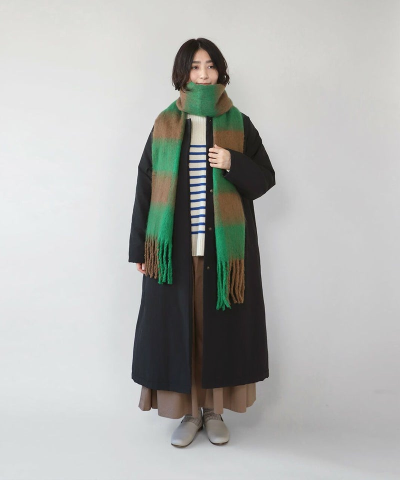 鮮やかな色彩と大きなチェックが印象的なストールです。 十分な長さはいろいろな巻き方を楽しめ、スタイリングの主役にもなります。 やわらかな肌触りと適度なボリューム感で、冷たい風からしっかり守ってくれます。 ギフトにもおすすめです。