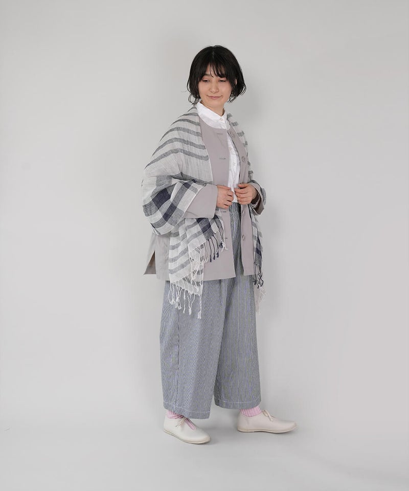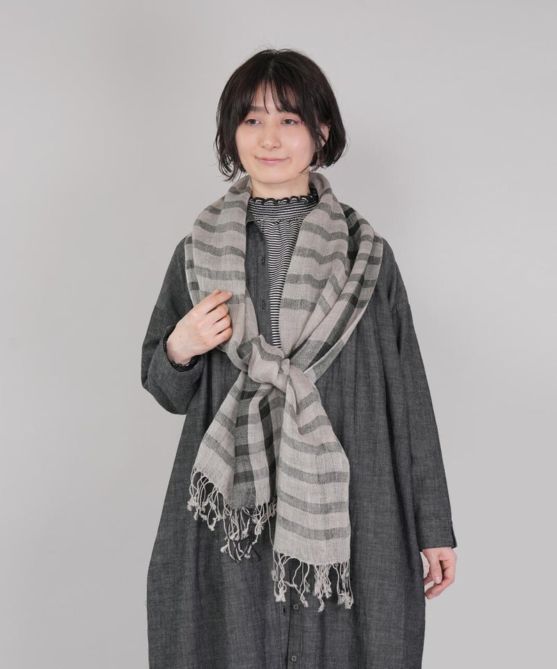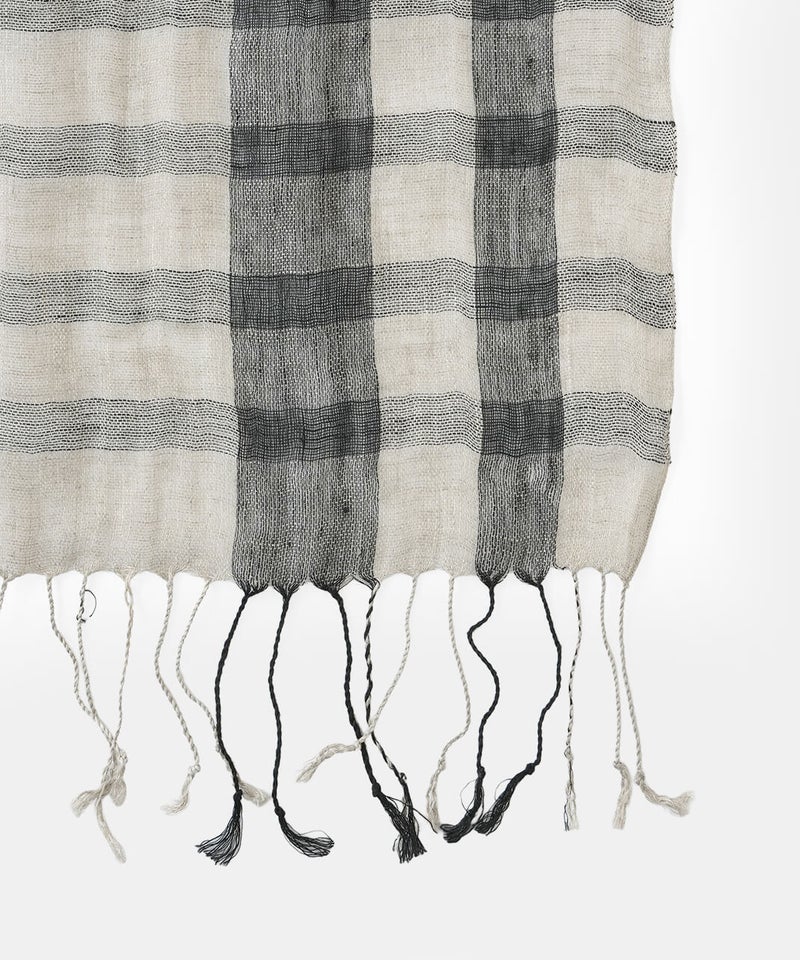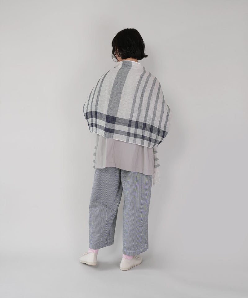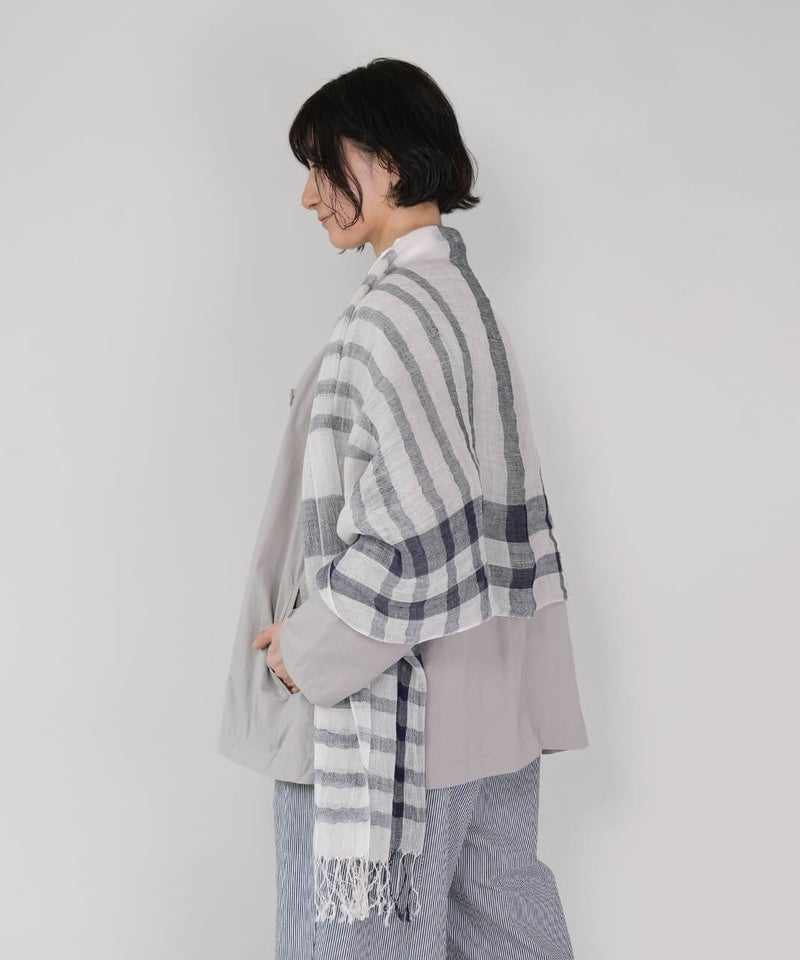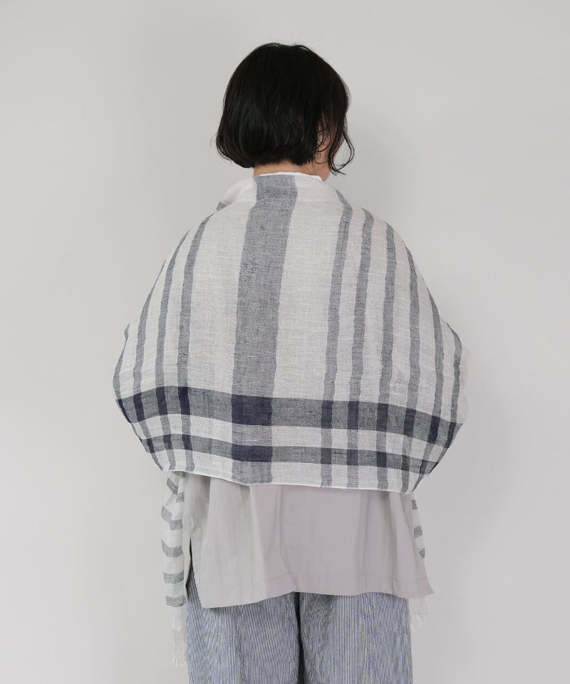 リネン素材のシンプルでやわらかな風合いのチェックストールです。ナチュラルな表情の柄が、春から夏にかけてコーディネートのポイントとしてはもちろん、日よけや冷房対策にも重宝する1枚です。軽やかな素材感で、畳んでバッグにしのばせておけるのも嬉しいところ。季節の定番ストールです。