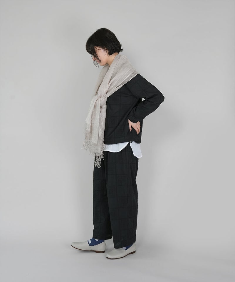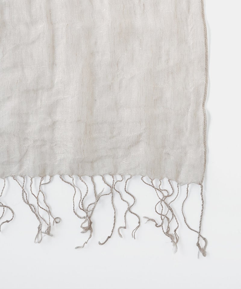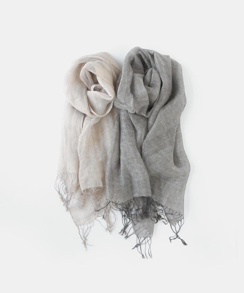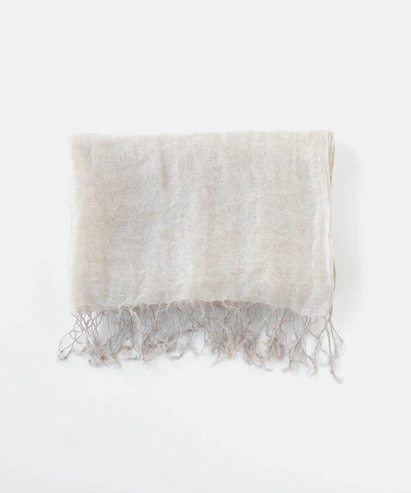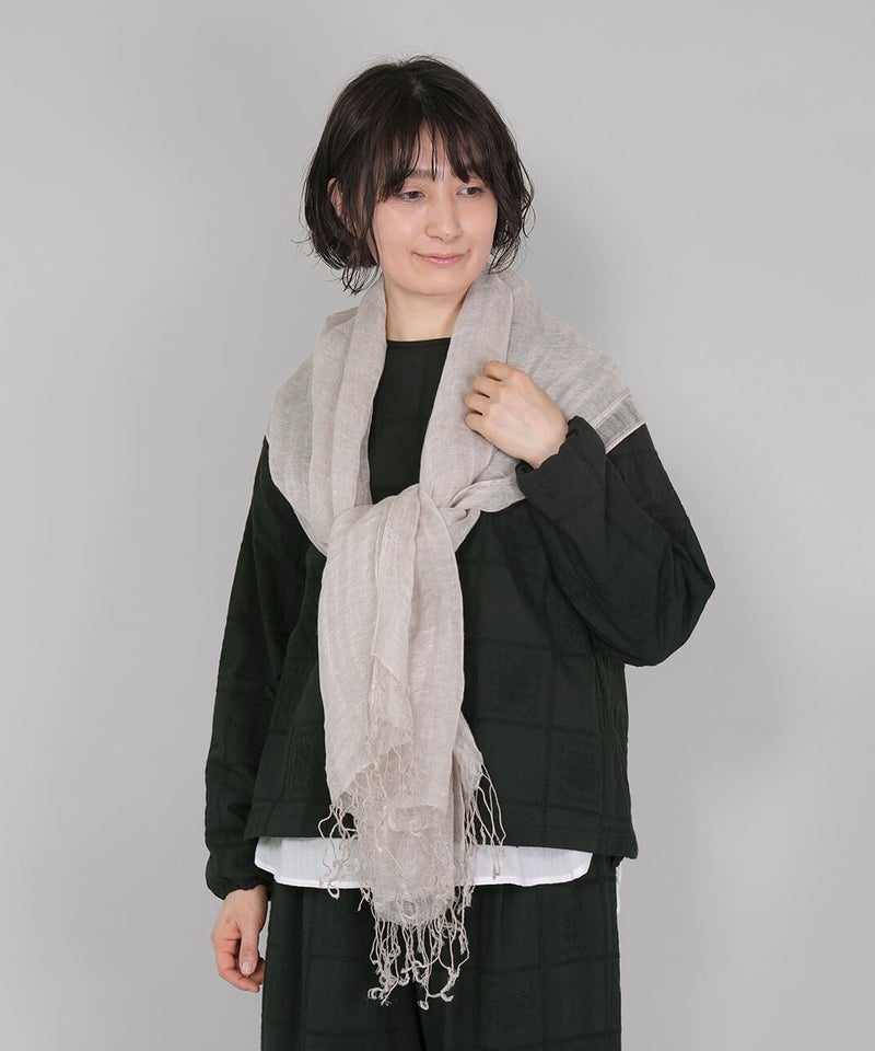 リネン素材のやわらかな風合いのストールです。ナチュラルな杢調の色合いが、シンプルでやさしい印象を添えます。春から夏にかけてコーディネートのポイントとしてはもちろん、日よけや冷房対策にも重宝する1枚です。軽やかな素材感で、畳んでバッグにしのばせておけるのも嬉しいところ。季節の定番ストールです。