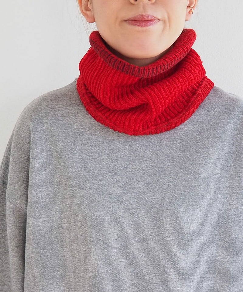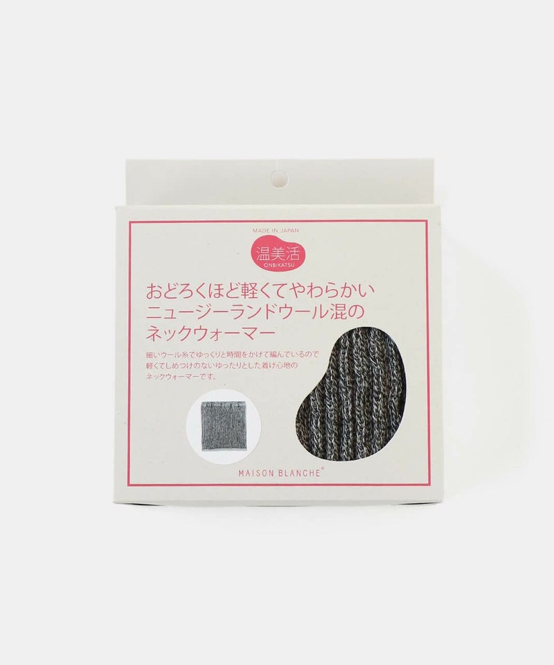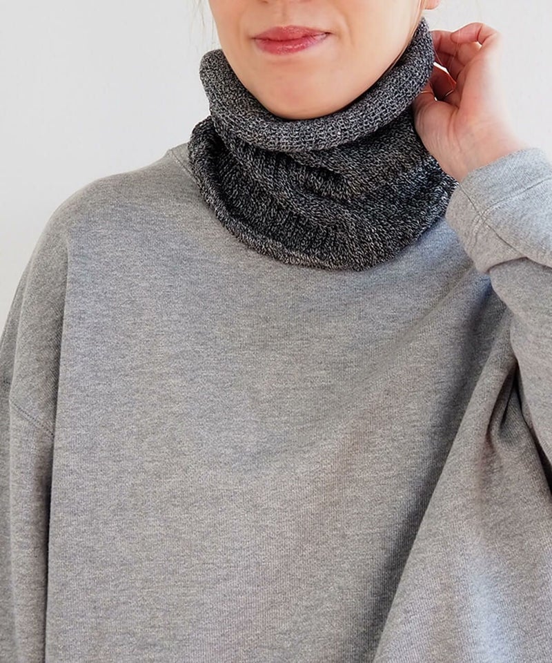 ニュージーランド産のファインウールと豪州メリノをブレンドしたウールを使用しています。 チクチクしにくい細いウール糸でゆっくりと時間をかけて編み、ゆったり身につけられるよう締め付けを少なく仕上げています。 約42gとおどろくほど軽くやわらかいので、ずっとつけていても負担にならず肩こりさんにもピッタリ。 1日中首元をやさしく温めながらお過ごしいただけるネックウォーマーです。