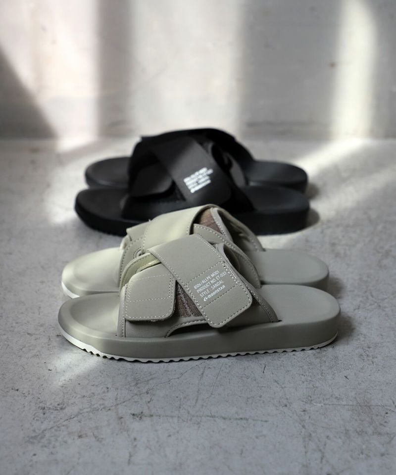 ユニバーサルデザインの心地良さをデイリーユースに。スポサンよりも気軽でスライドよりもフィッティングに優れた仕様。 フッドヘッドの素材を反発力の高い配合に改良しコンフォート性を向上。 履く人に合わせた位置でベルトを固定できる簡潔な構造のサンダルタイプ。