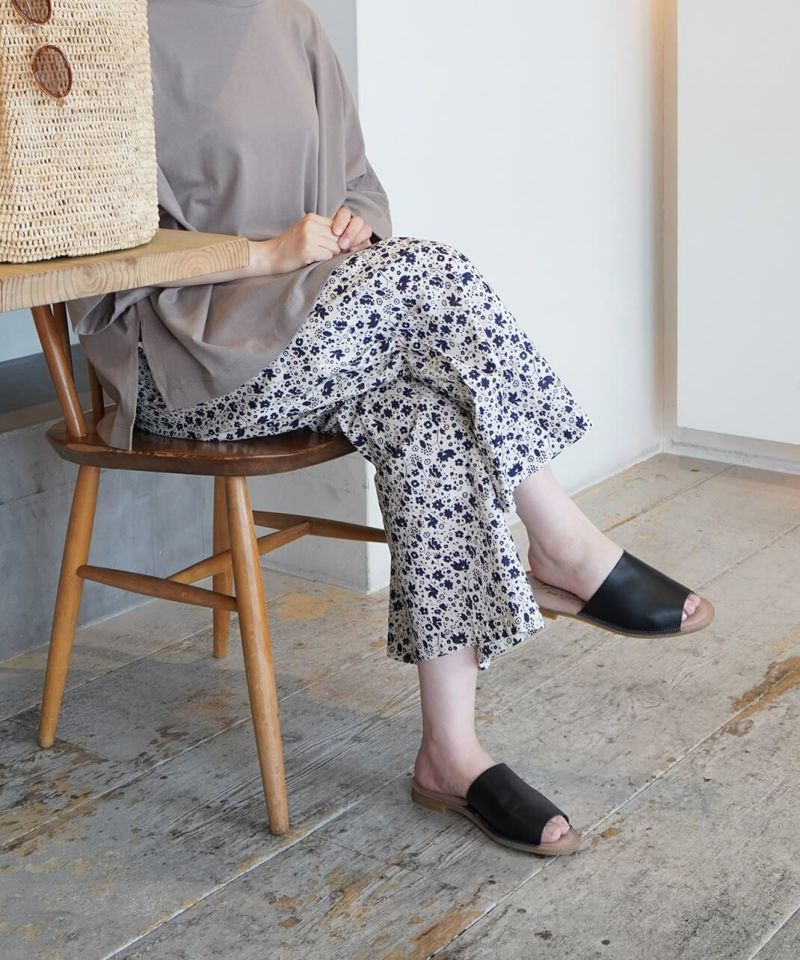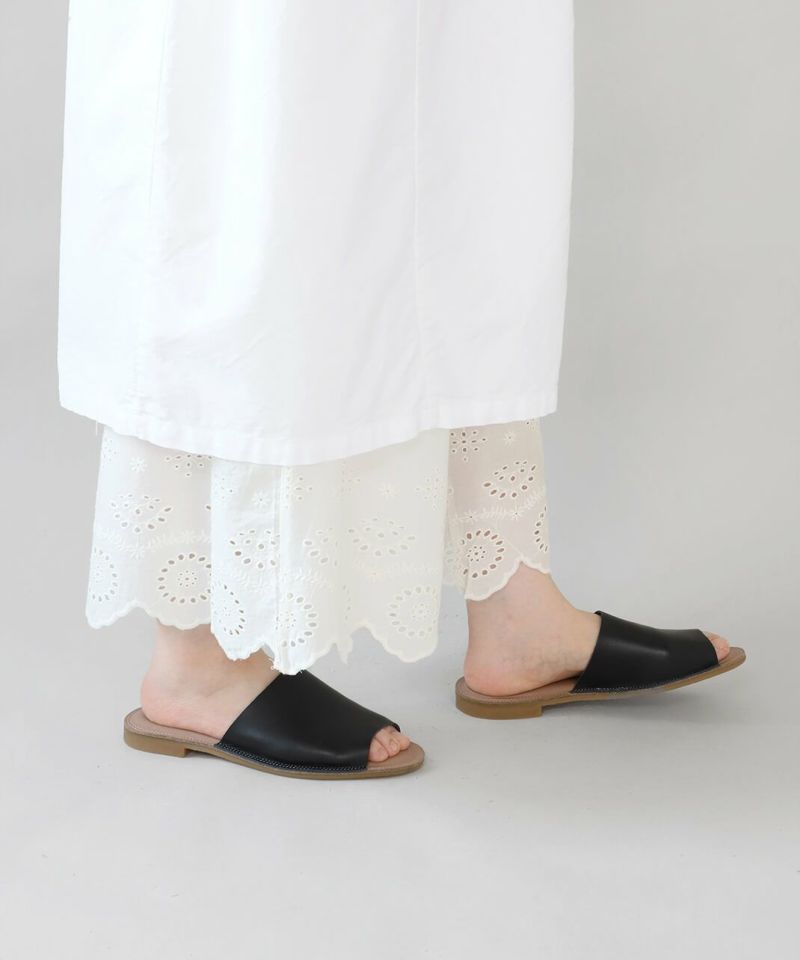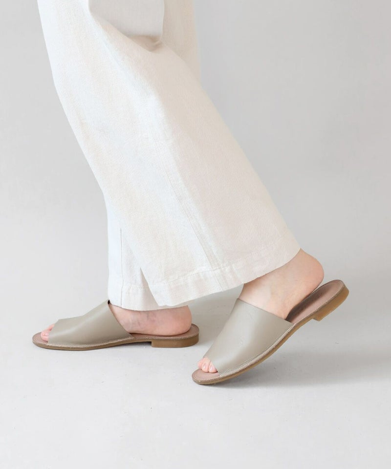 アッパーには、柔らかくしなやかな国産牛革を使用。 足の甲をしっかり覆う深めのデザインで、脱げにくく安定感のある履き心地に仕上げました。 かかとが開いたデザインながらも、しっかりと足にフィットし、気軽に履けて歩きやすいのが魅力です。