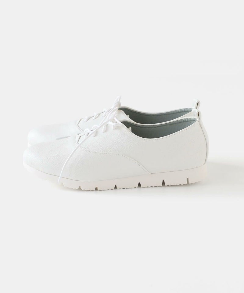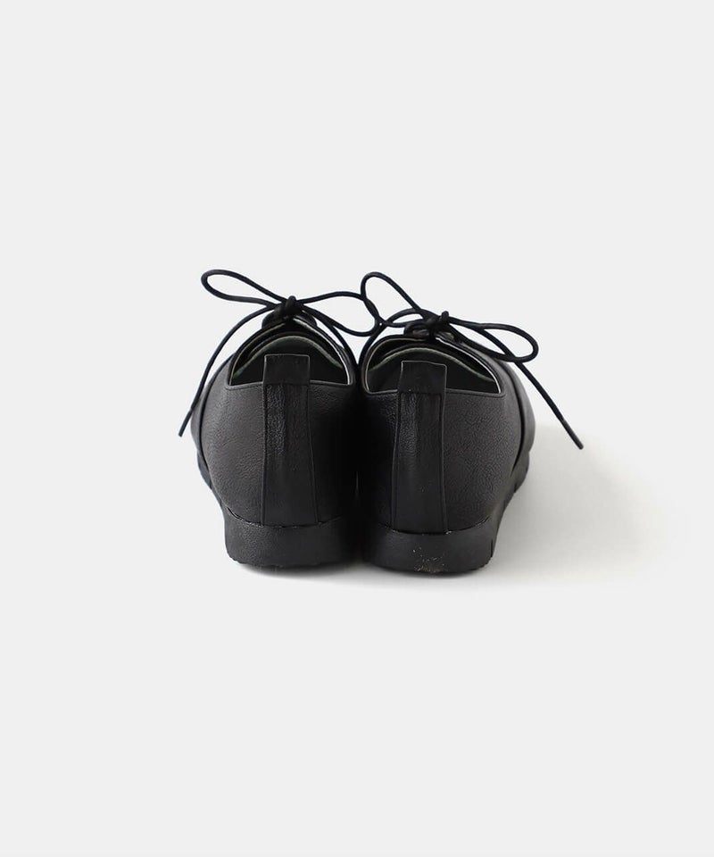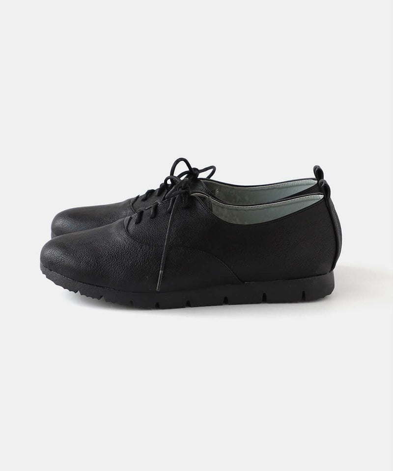 すっきりとした印象のレースアップシューズ。アッパー素材は質感の良い合皮素材で履き始めから柔らかく、履き心地に優れています。