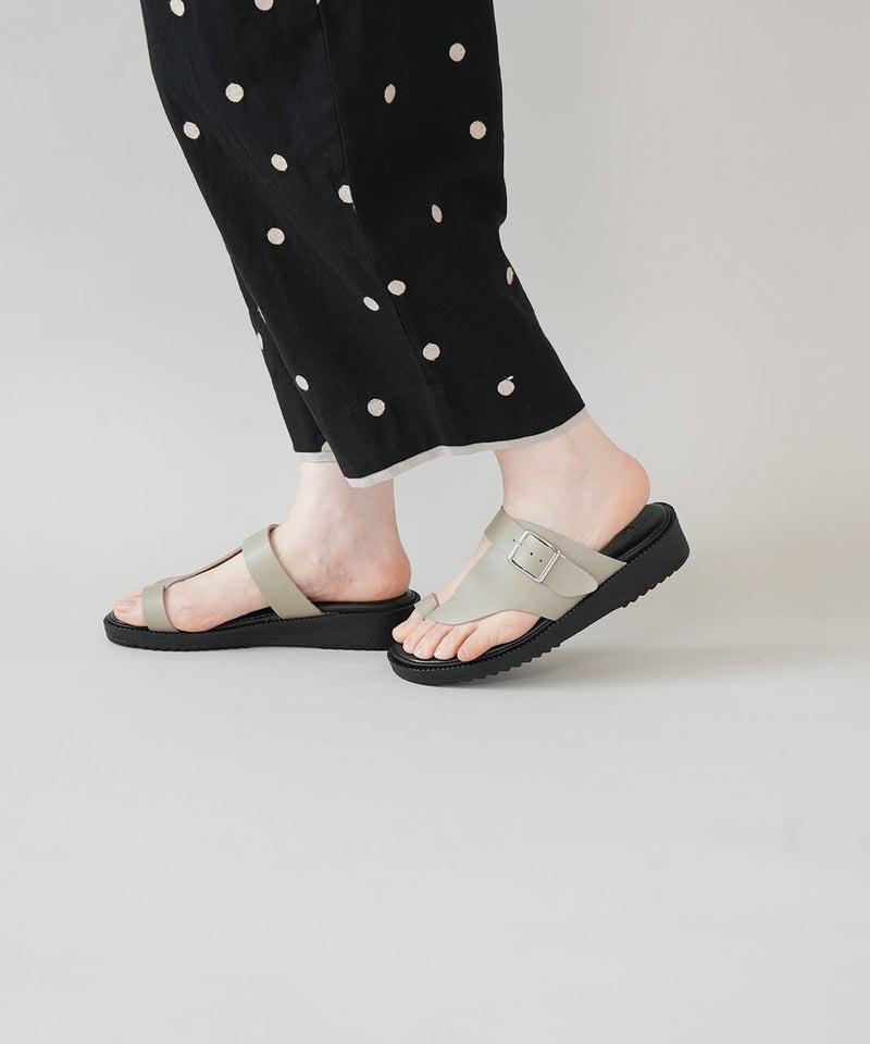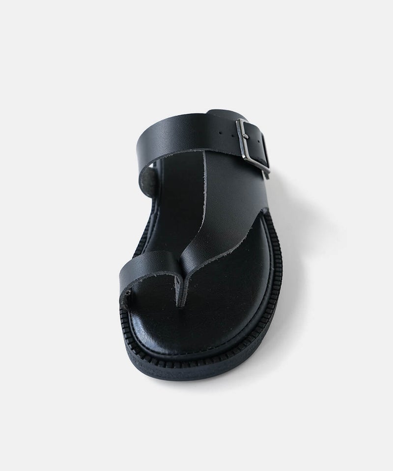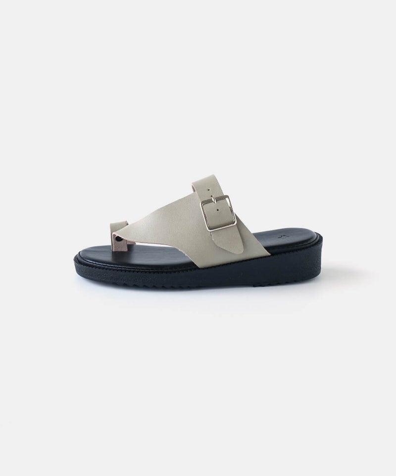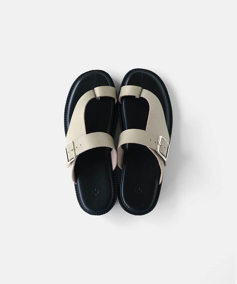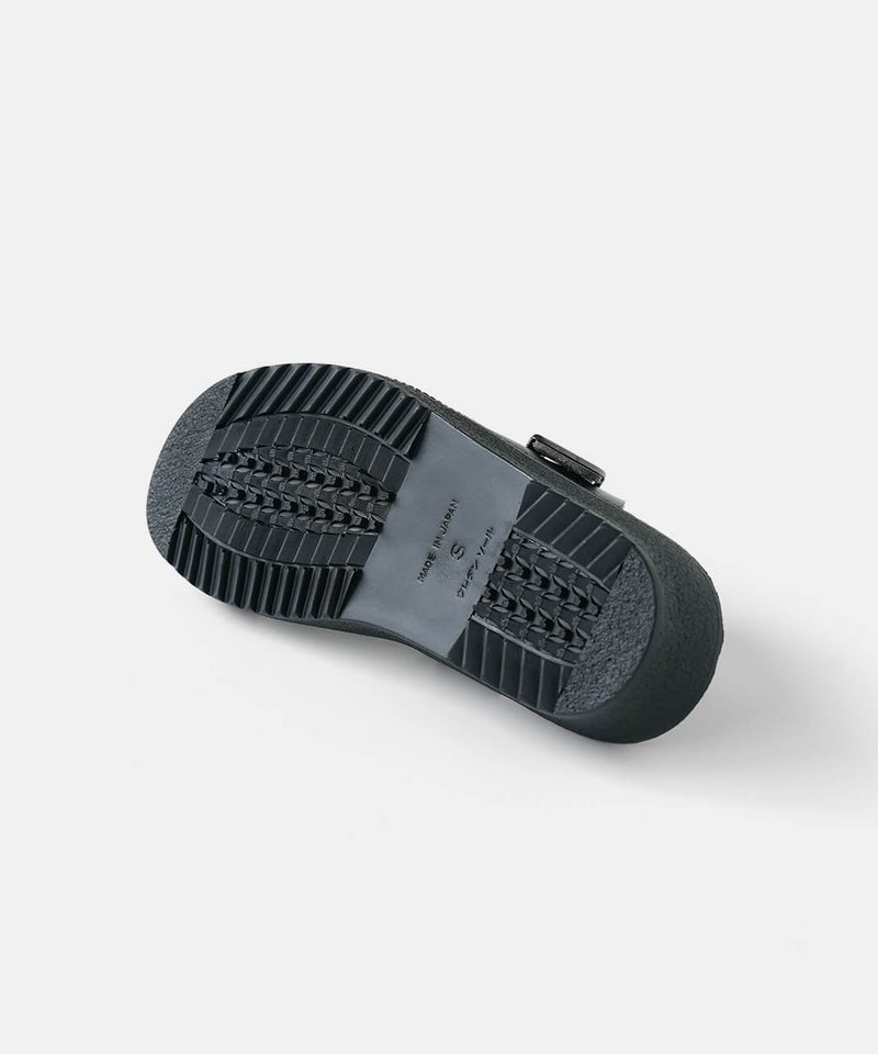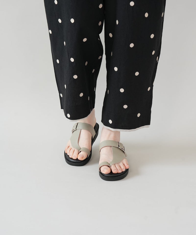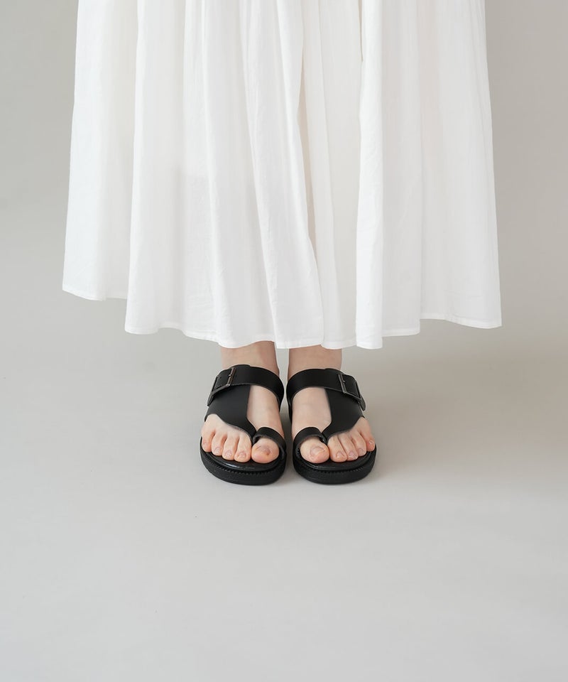 "ベンハー"という愛称で親しまれてきた鼻緒タイプのサンダルがデザインソースになっていることから、敬意を込めて名付けた「Ben-Hur(ベンハー)」。昔から奈良で作られていたトングタイプのサンダルを、今の暮らしに馴染むようミニマルにデザインし直しました。一見すると無骨なデザインに見えますが、やわらかい素材を使っているから足なじみがよく、足指が痛くなってしまう心配もありません。履き口のベルトは、4段階で調整が可能です。甲の高さに合わせてフィット感を高めることで、より安定した歩き心地を実現します。足裏をしっかり支えるインソールには、ほどよい厚みのクッションを採用。もっちりとした、心地よい踏み心地に仕上げました。