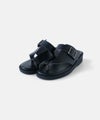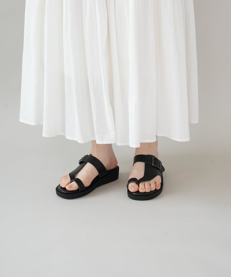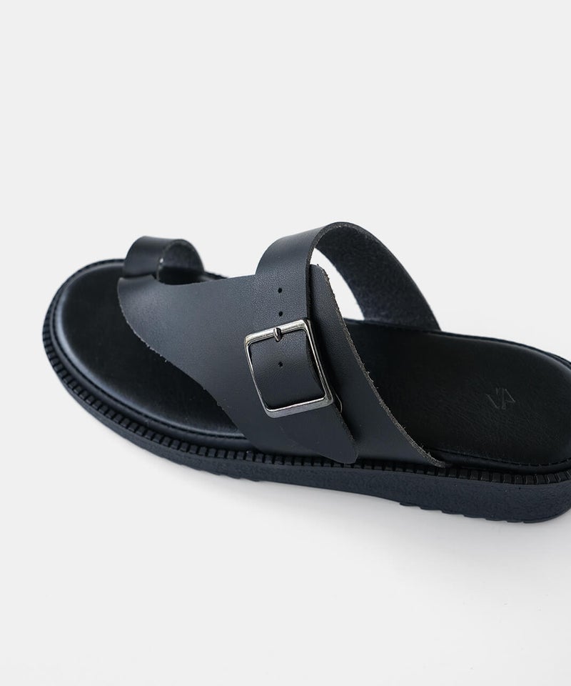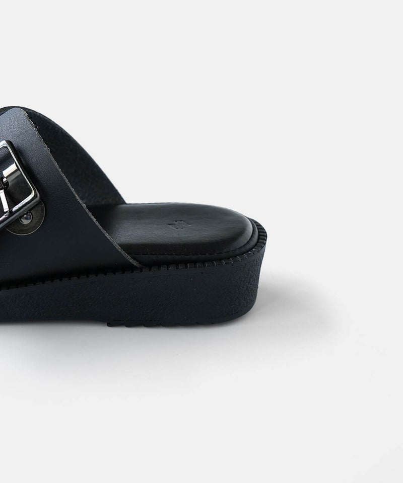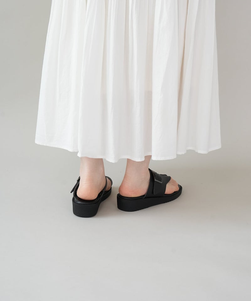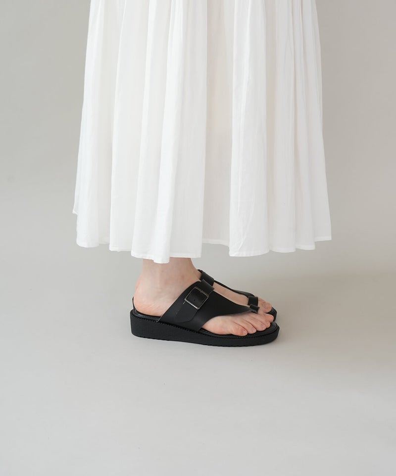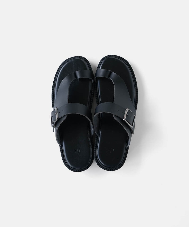 "ベンハー"という愛称で親しまれてきた鼻緒タイプのサンダルがデザインソースになっていることから、敬意を込めて名付けた「Ben-Hur(ベンハー)」。昔から奈良で作られていたトングタイプのサンダルを、今の暮らしに馴染むようミニマルにデザインし直しました。一見すると無骨なデザインに見えますが、やわらかい素材を使っているから足なじみがよく、足指が痛くなってしまう心配もありません。履き口のベルトは、4段階で調整が可能です。甲の高さに合わせてフィット感を高めることで、より安定した歩き心地を実現します。足裏をしっかり支えるインソールには、ほどよい厚みのクッションを採用。もっちりとした、心地よい踏み心地に仕上げました。