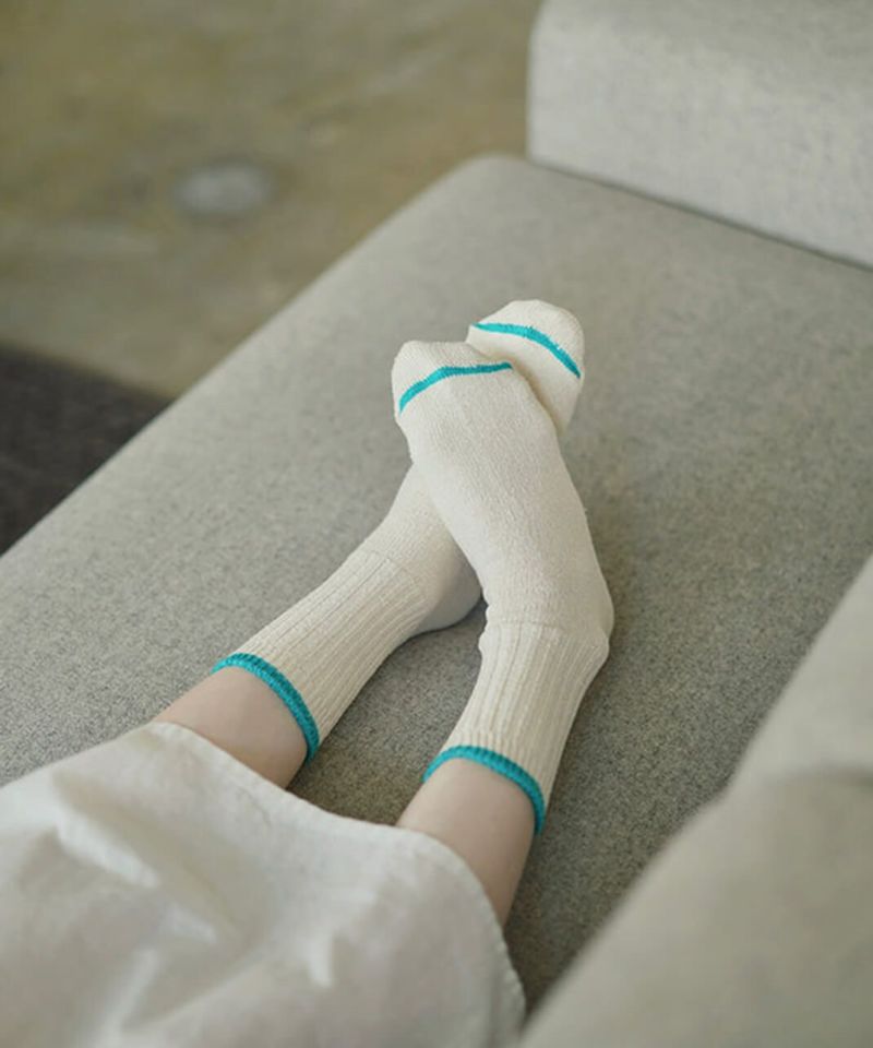 エコシルクとリサイクルコットンを使用した柔らかな味わいのある靴下。紡績時に糸にならなかったヴァージンコットンを特殊な紡績機にかけたリサイクルコットンとシルク紬糸を合わせた糸を使用しているので、シルクらしいしっとりとした風合いと綿らしい柔らかさが楽しめる靴下です。