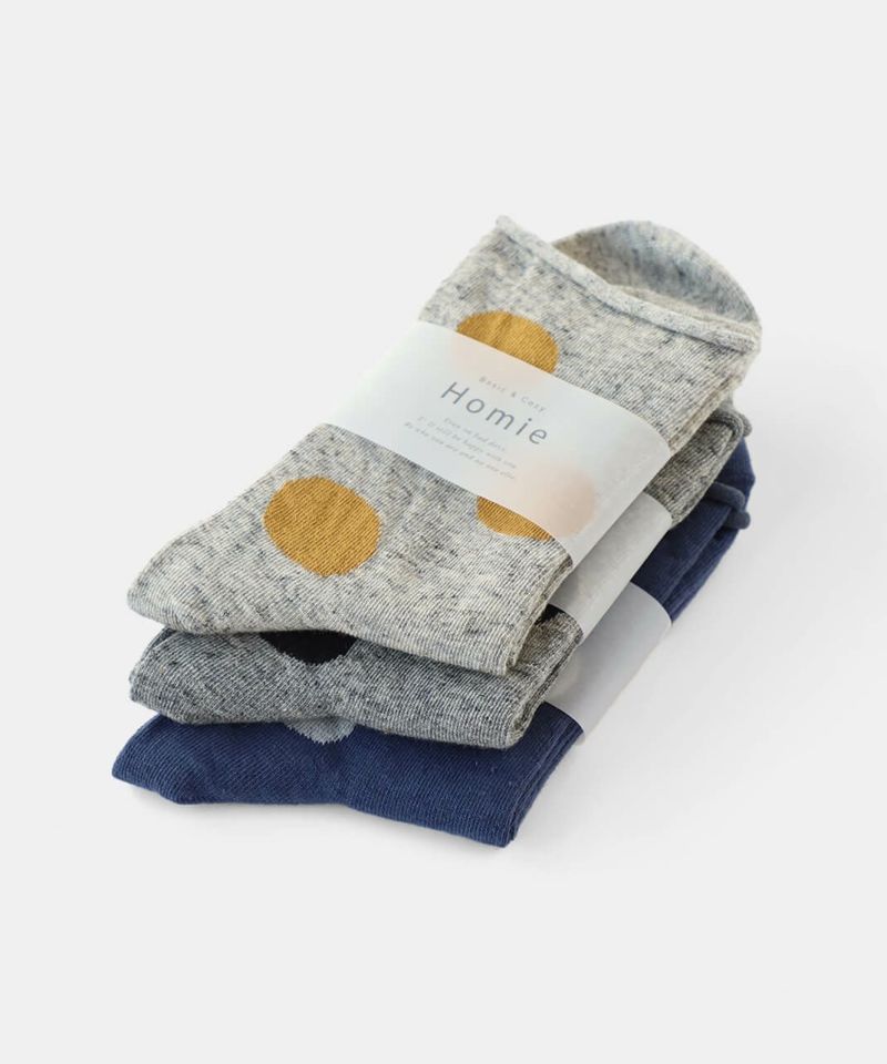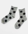 綿麻素材のドットソックス。落ち着いたトーンの配色でコーディネートにも取り入れやすいです。薄手の綿麻素材で肌触りもよく、オールシーズン履いていただけます。履き口はくるっと丸まった仕様で、締め付け感なく履いていただけます。