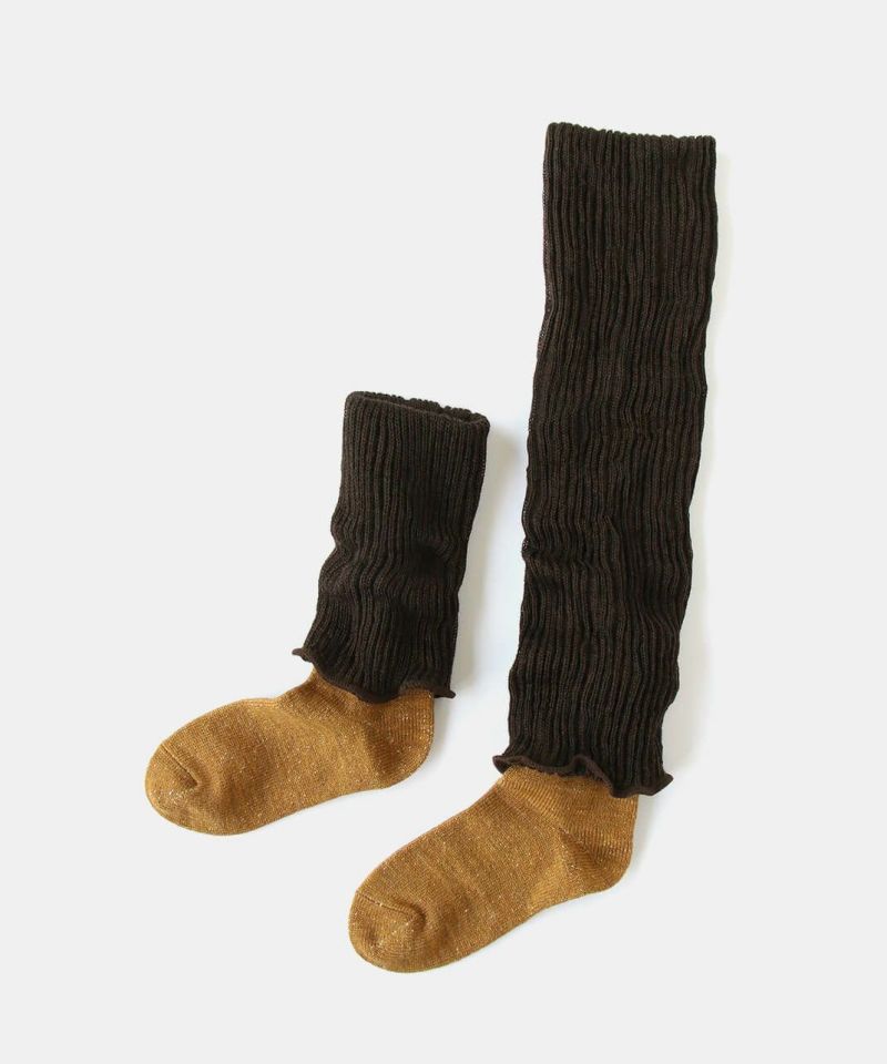 肌に触れる内側はシルク、外側は柔らかく保温性が高いウールを使用した2重編みのレッグウォーマーです。 シルクは汗を吸収し、しっとりしたやさしい風合いになり、外側のウールは柔らかく、真冬の寒い日でもやさしく温めてくれます。