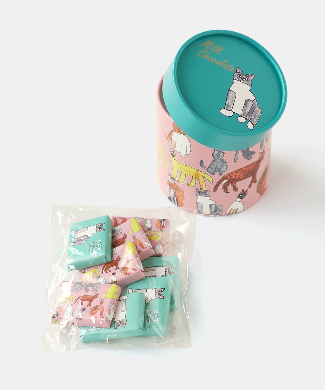 アーティスト 筧 純爾さんの世界観が楽しめるBOXです。 BOXには「ディレクターキャット」のアートワークがデザインされています。 中身のチョコレートは「座ってるネコ」と、箱とお揃いの「ディレクターキャット」の2種類のアートワークがデザインされています。