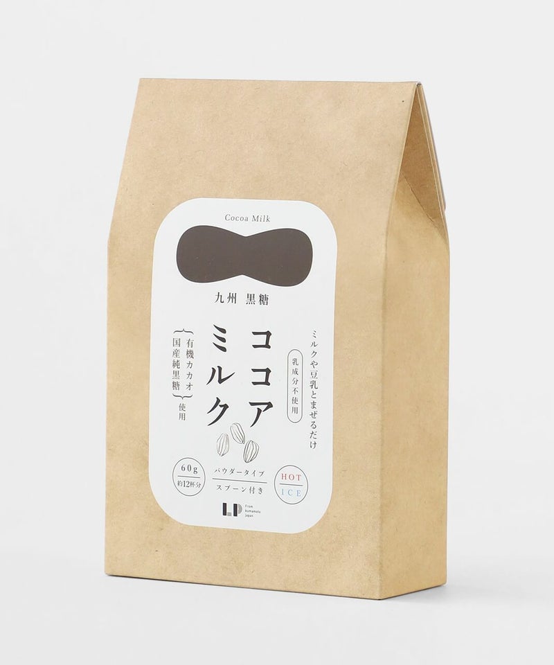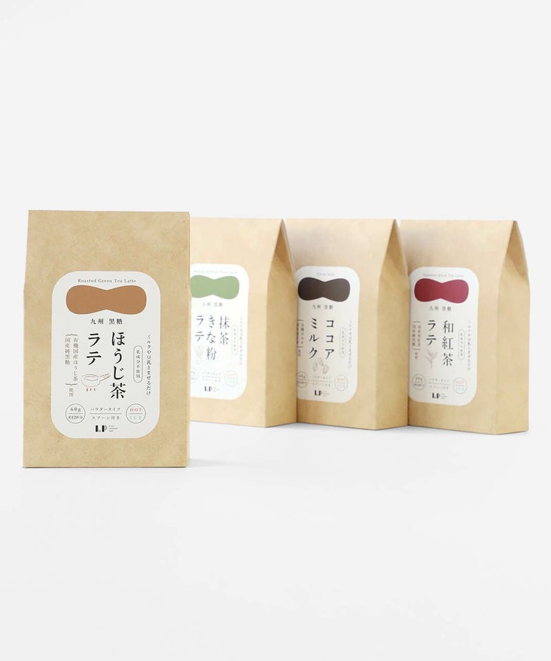 九州産の有機黒糖や有機国産茶を使用したパウダータイプのラテの素です。 HOT/ICEの牛乳や豆乳で割ってお楽しみいただけます。 一袋で約1杯分お楽しみいただけ、袋の中にパウダーの取り分けに便利な木製のスプーンが付属しています。