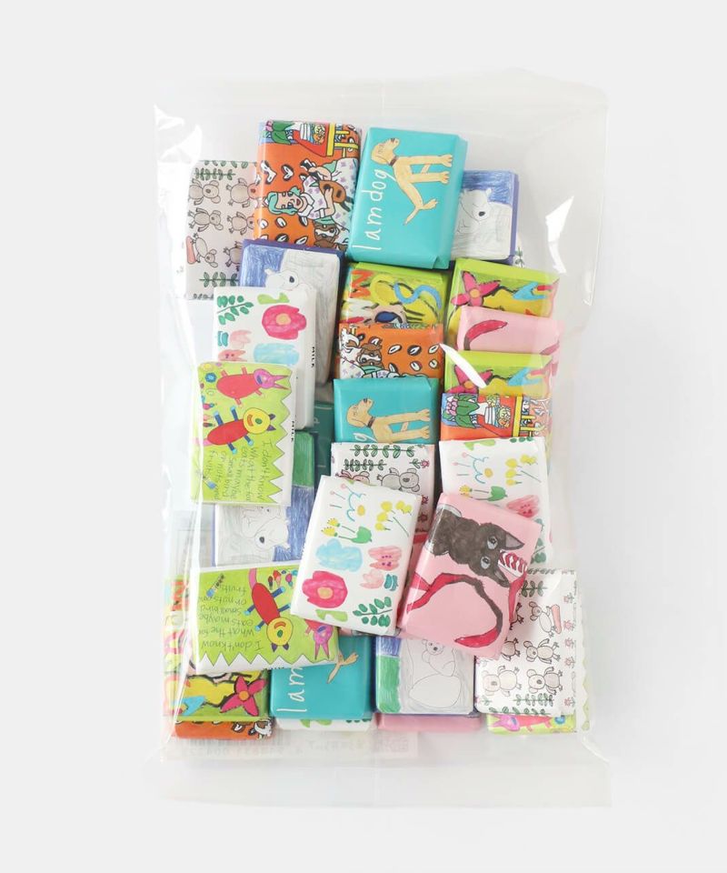 8人のアーティストの作品が一口サイズのミルクチョコレートのパッケージになった限定アートBOXです。 チョコのパッケージに使用されているのは、相原 美樹さん、池田ジャスティーヌさん、筧 純爾さん、栗田 佳子さん、二梃木 淳一さん、山本 俊太さん、山本 頼子さん、横溝 さやかさんの作品。