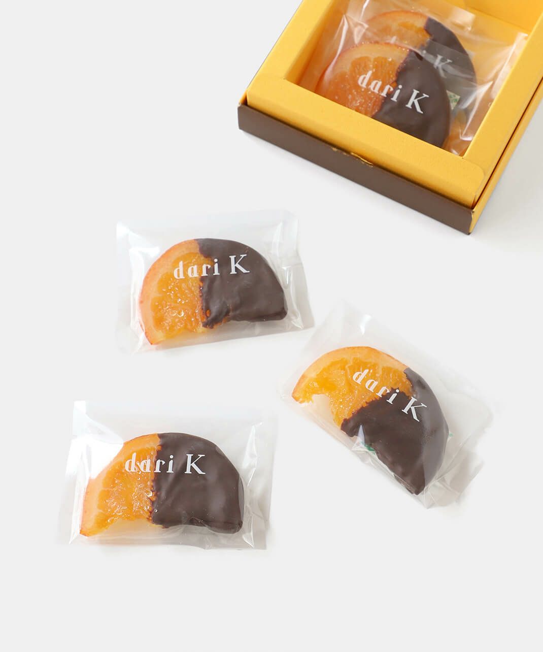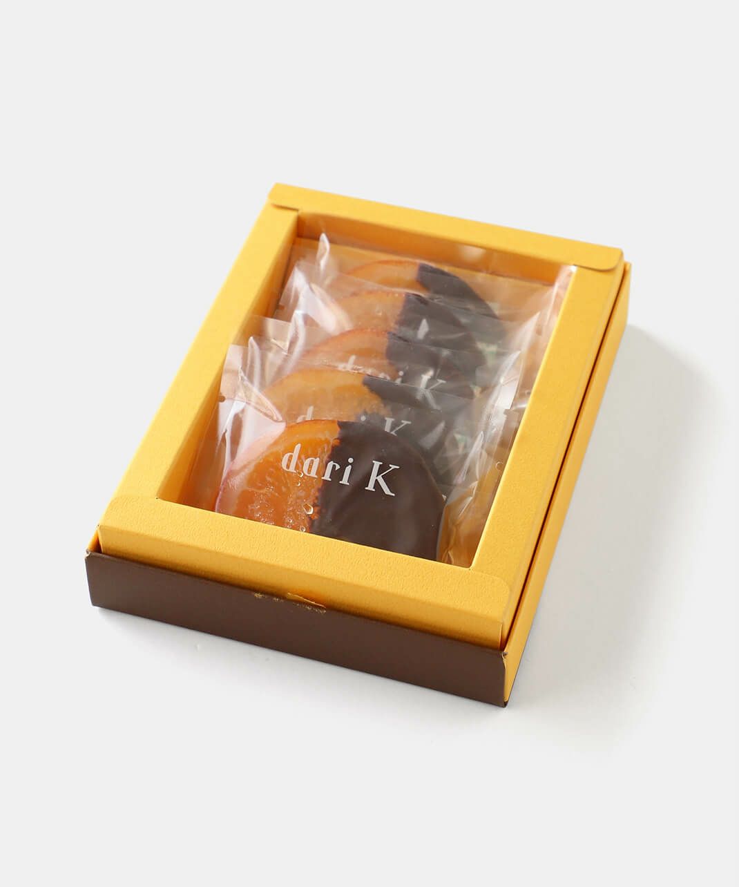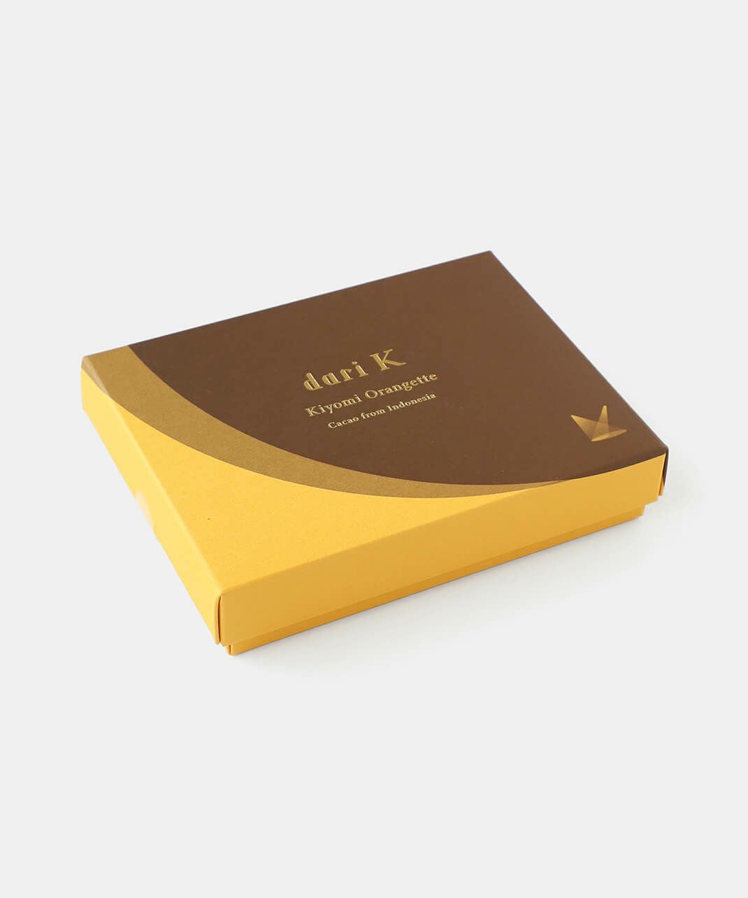dariKの「オランジェット -清見オレンジ-」は、素材のよさを大切にした、からだ想いの一品です。 愛媛県産・清見オレンジの果肉を、熱を極力加えずに厚め(約6mm)スライス。 独自の蜜漬け製法で、約1ヶ月かけてしっとりとした食感と自然な甘みを引き出しました。 その果実を、dari Kが農家とともにこだわって育てたインドネシア・スラウェシ島産のカカオ豆を使用した、78%カカオのダークチョコレートで包み込みます。 果実の爽やかなオレンジ香と、カカオのフルーティーな酸味、そしてすっきりした後味が美しく調和しています。 オレンジとチョコレート、それぞれの素材本来の味わいを損なうことなく、「果実のジューシーな甘さ × 深みあるカカオの余韻」という大人の時間を演出。 頑張る自分へのご褒美に、大切な方への贈りものにもぴったりです。 数量限定販売ですので、ぜひお早めにお求めください。