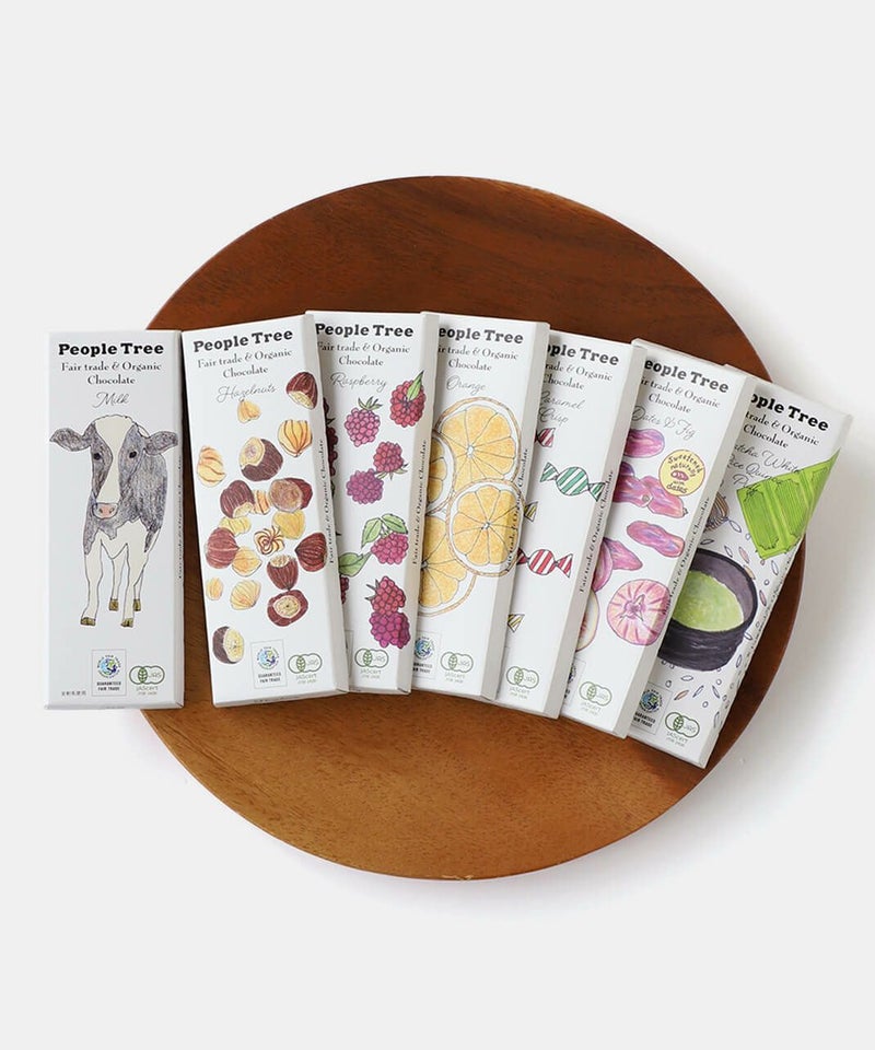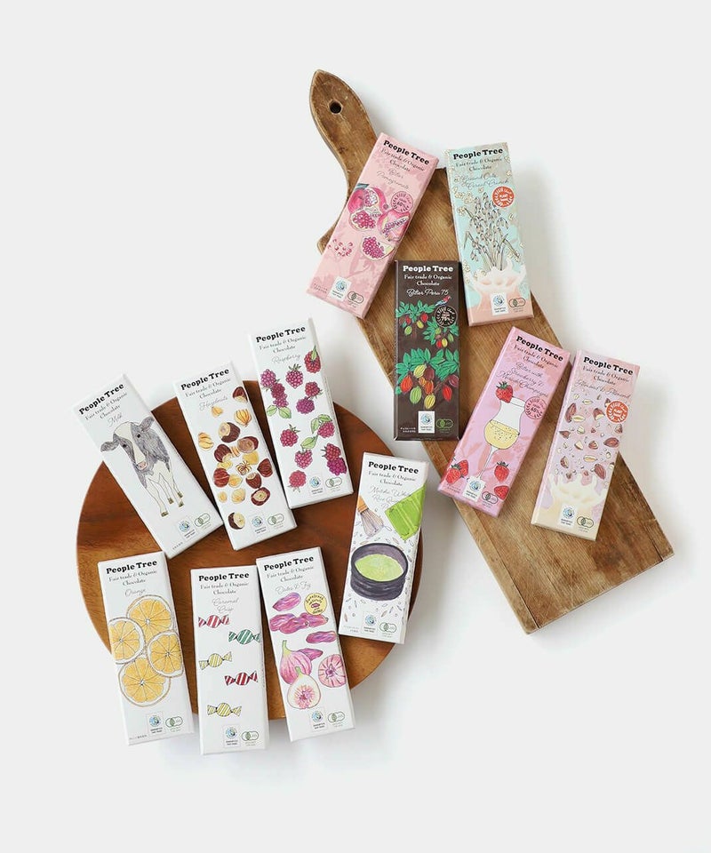 ピープルツリーのチョコはベースとなるカカオ、黒糖、粗糖をはじめ、トッピング素材もすべて有機原材料を使用。
