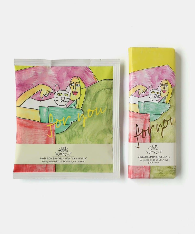 様々な障がいを持つ人が好きなこと・得意なことで活躍し、 嬉々として創造的に暮らせる社会を目指して活動する福祉施設/アトリエ 「嬉々!! CREATIVE(キキ・クリエイティブ)」の個性的なアーティストたちが手がける、ポップでキュートな限定アートパッケージ『Artisanシリーズ』。 筧 純爾さん、齊藤 瑛那さん、三本木 海人さん、森山 幸美さん、山本 頼子さん、5人のアーティストの作品が、フェアトレードチョコレートのパッケージになりました。 ご自宅用にはもちろん、ポップでキュートなアートワークのパッケージは、ギフトにもぴったり。 チョコレートとコーヒーはお揃いのデザインなので、セットでプレゼントいただくのもおすすめです。