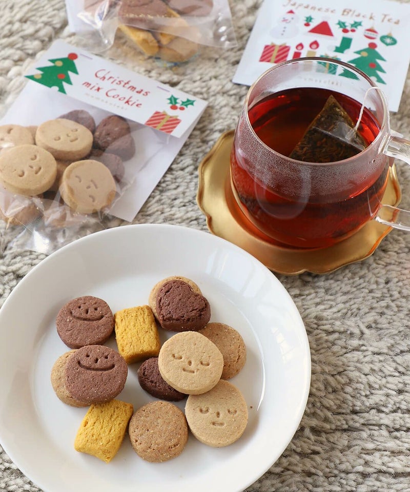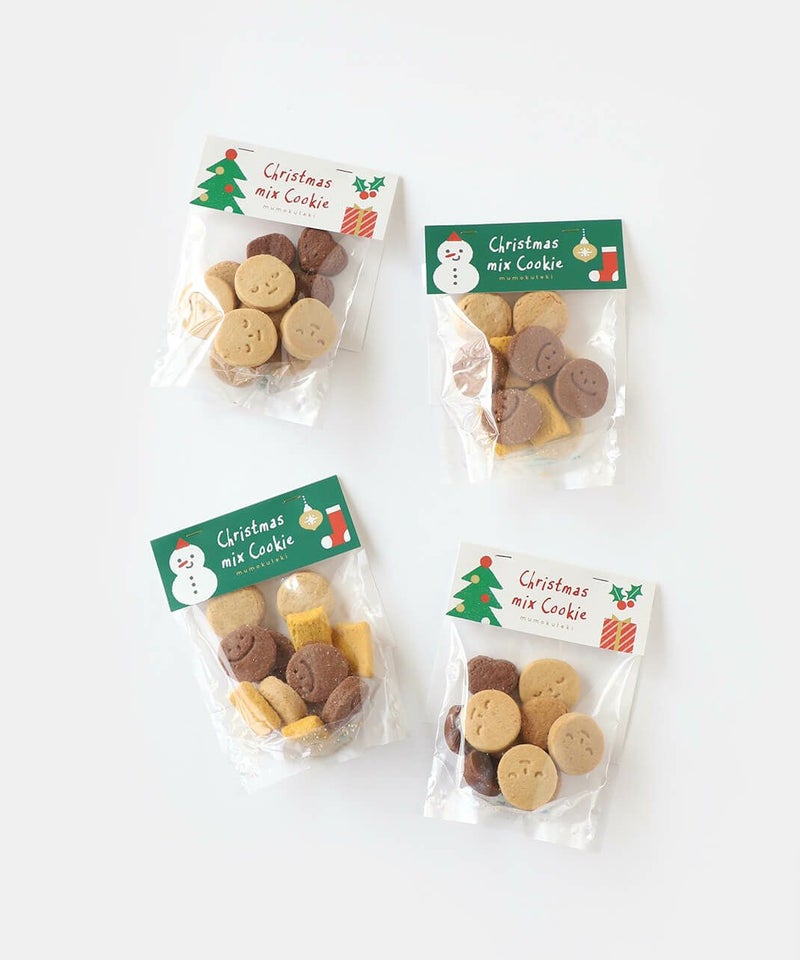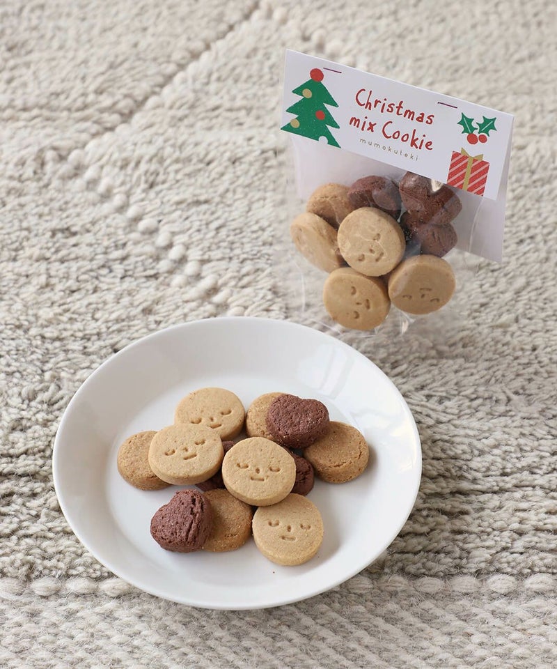 どちらも飽きのこない素朴なおいしさで、日常のおやつにはもちろん、クリスマスのちょっとしたギフトにもぴったり。 ナチュラルで温かみのあるディープグリーンのクリスマス限定パッケージは、自宅用にも贈り物にも選びやすい上品なデザインです。 からだにやさしく、素材のおいしさがまっすぐに伝わるmumokutekiだけのクリスマスクッキー。 ご家庭でのくつろぎ時間や、大切な方への気軽なギフトにどうぞ。
