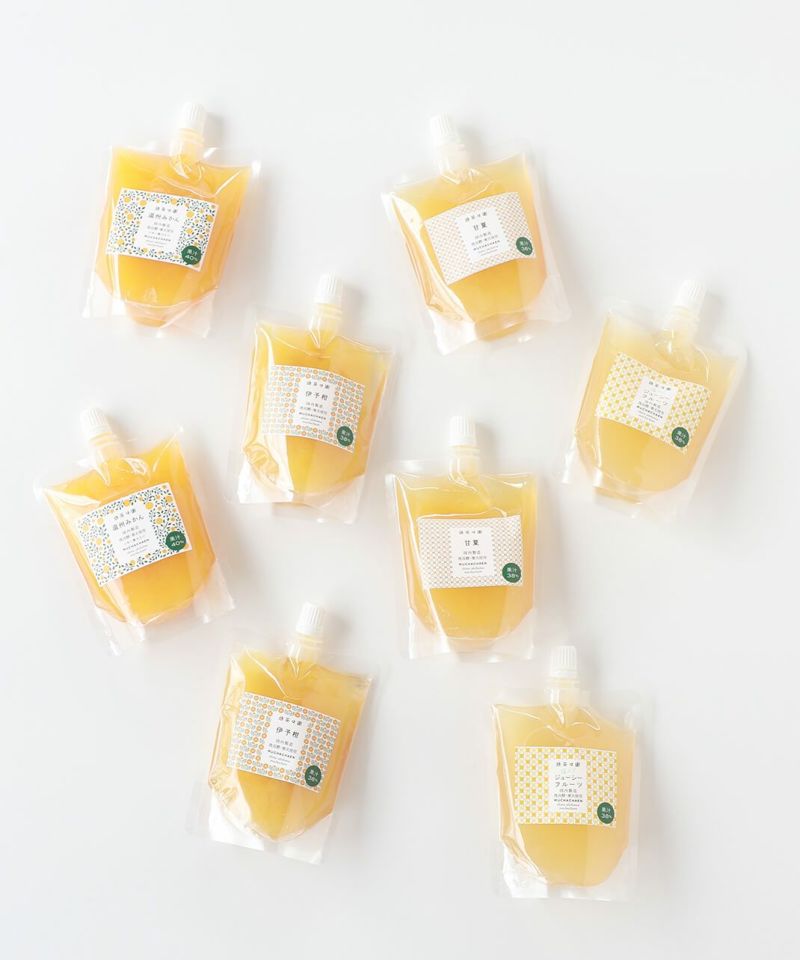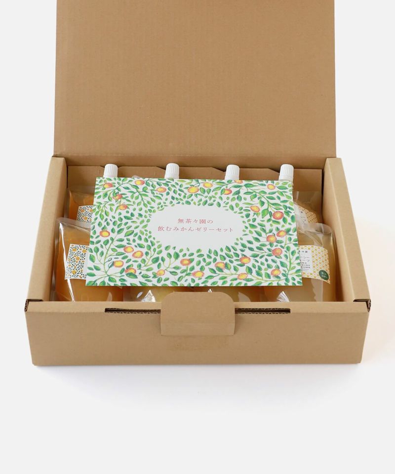 無茶々園産の柑橘果汁に、国産の粗糖、粉寒天、こんにゃく粉を加え、ゆるく固めた飲むゼリー。