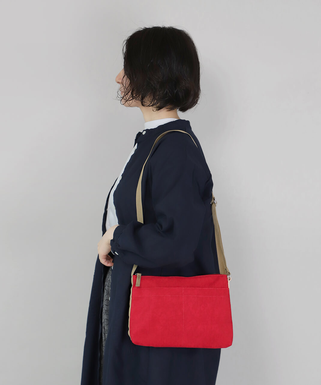 ナイロン素材なので汚れがつきにくく、お手入れが苦手な方にもおすすめです。 軽いのでバッグの中に忍ばせてポーチとして活用も。必要な時だけサッと取り出して、ポーチからサコッシュに早変わりなんて使い方もできます。