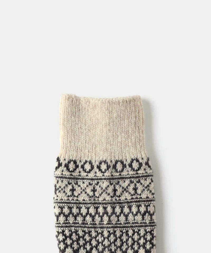 縮みにくく柔らかいのが特徴的な「防縮ウール」を使用した「ウールジャガードソックス」です。 ふくらみのある「防縮ウール」をしっかりと編み上げているので、どっしりとした履き心地で、とても温く仕上がっています。 洗濯を重ねても、縮みにくい設計なので、寒い冬場に、繰り返し履いていただけます。