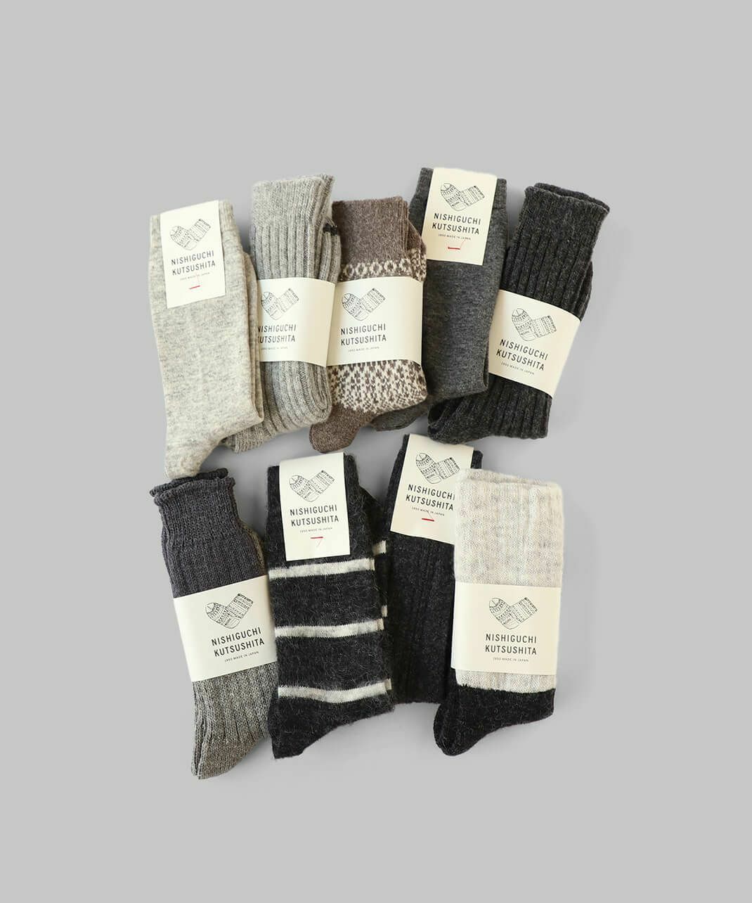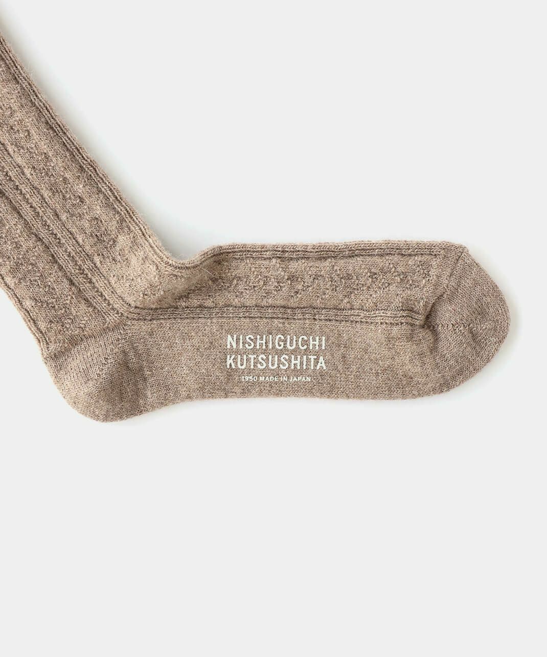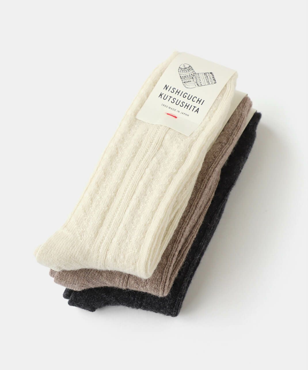 NISHIGUCHI KUTSUSHITAは1950年から靴下づくりをつづける、日本のファクトリー生まれの靴下ブランドです。履く人のことを真面目に考えてつくること。「はくひとおもい」という言葉に込めた想いが、私たち靴下づくりの原点です。良質な天然素材、新旧マシンを生かした編み方、時代にとらわれないデザイン、そして価格。一つ一つのこだわりは、すべて履く人のためを追求した答えです。トレンドだけを追い求めるのではなく、長く愛用できる定番をつくり続けます。