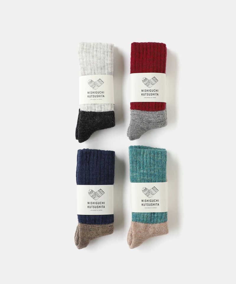 NISHIGUCHI KUTSUSHITAは1950年から靴下づくりをつづける、 日本のファクトリー生まれの靴下ブランドです。 履く人のことを真面目に考えてつくること。 「はくひとおもい」という言葉に込めた想いが、私たち靴下づくりの原点です。 良質な天然素材、新旧マシンを生かした編み方、時代にとらわれないデザイン、そして価格。 一つ一つのこだわりは、すべて履く人のためを追求した答えです。 トレンドだけを追い求めるのではなく、長く愛用できる定番をつくり続けます。