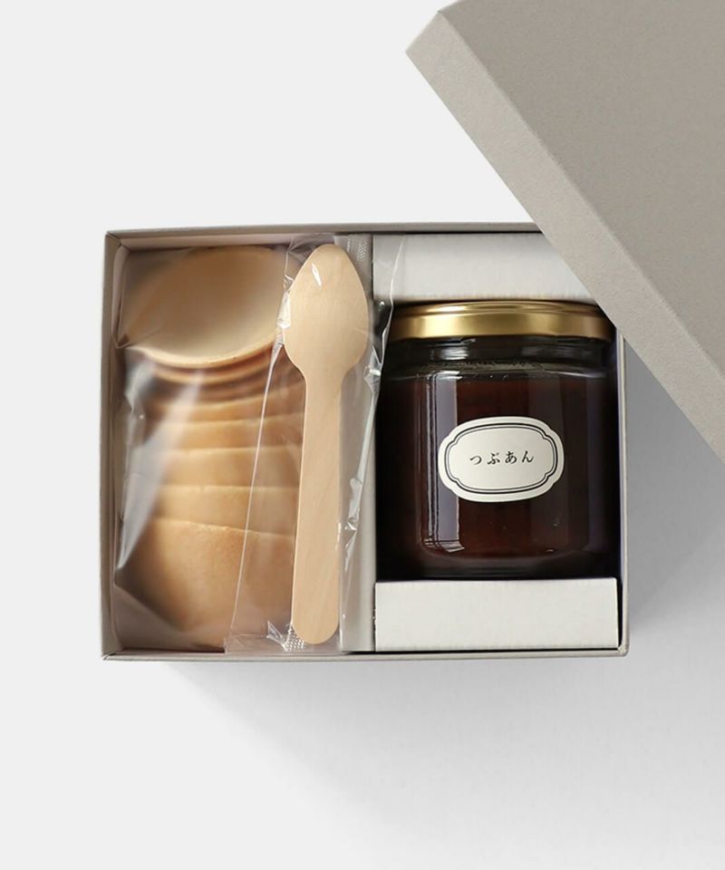 有田焼のふた付きちゃわんの形をした香ばしい最中の皮と佐賀の老舗菓子店「鶴屋」の風味豊かなつぶあんの瓶詰セットです。 ちゃわんにご飯をよそうようにお好みの量の餡をよそってお召し上がりください。 いつでも作り立て、サクサク状態の最中をお楽しみいただけます。 また、餡の上にバターやナッツ、果物などを添えて、アレンジを加えてみるのもおすすめです。