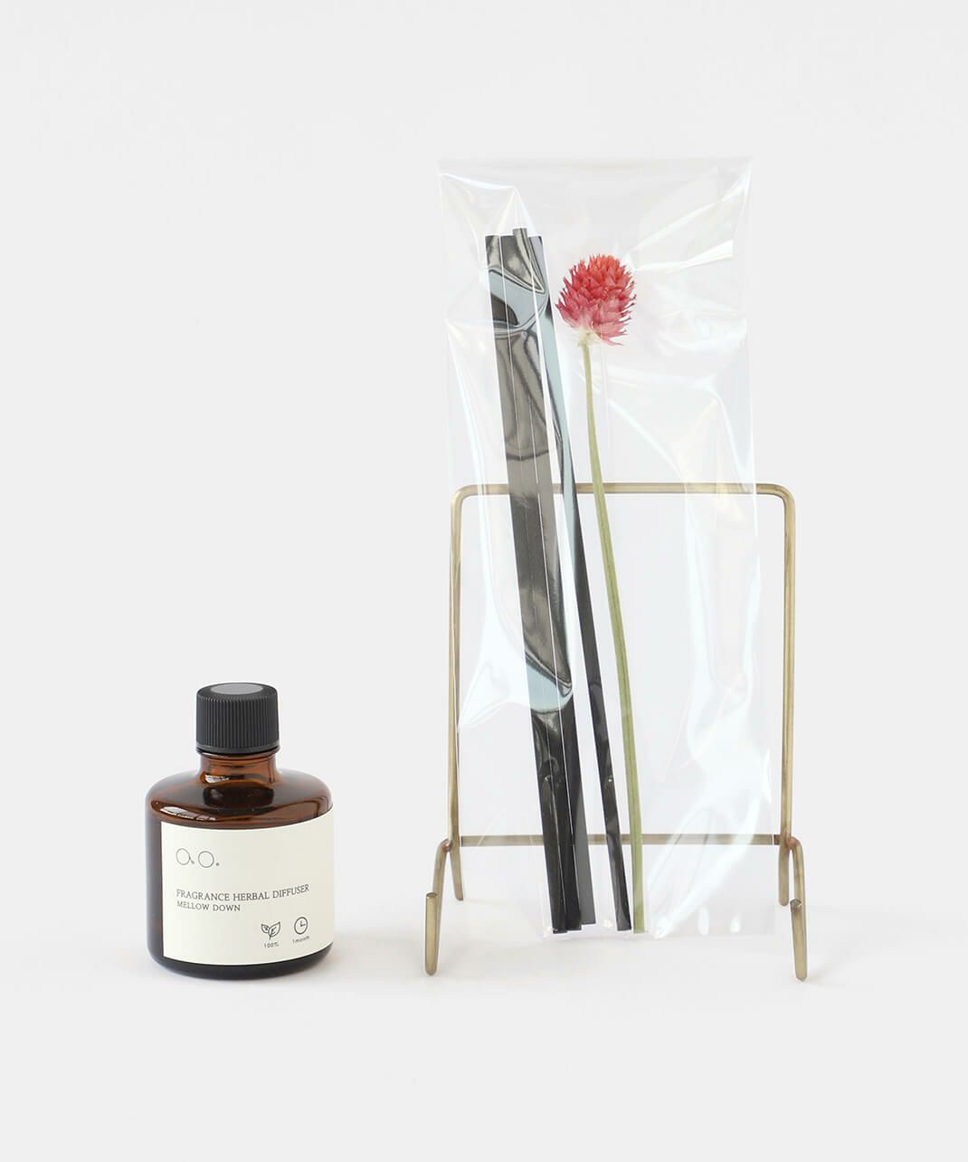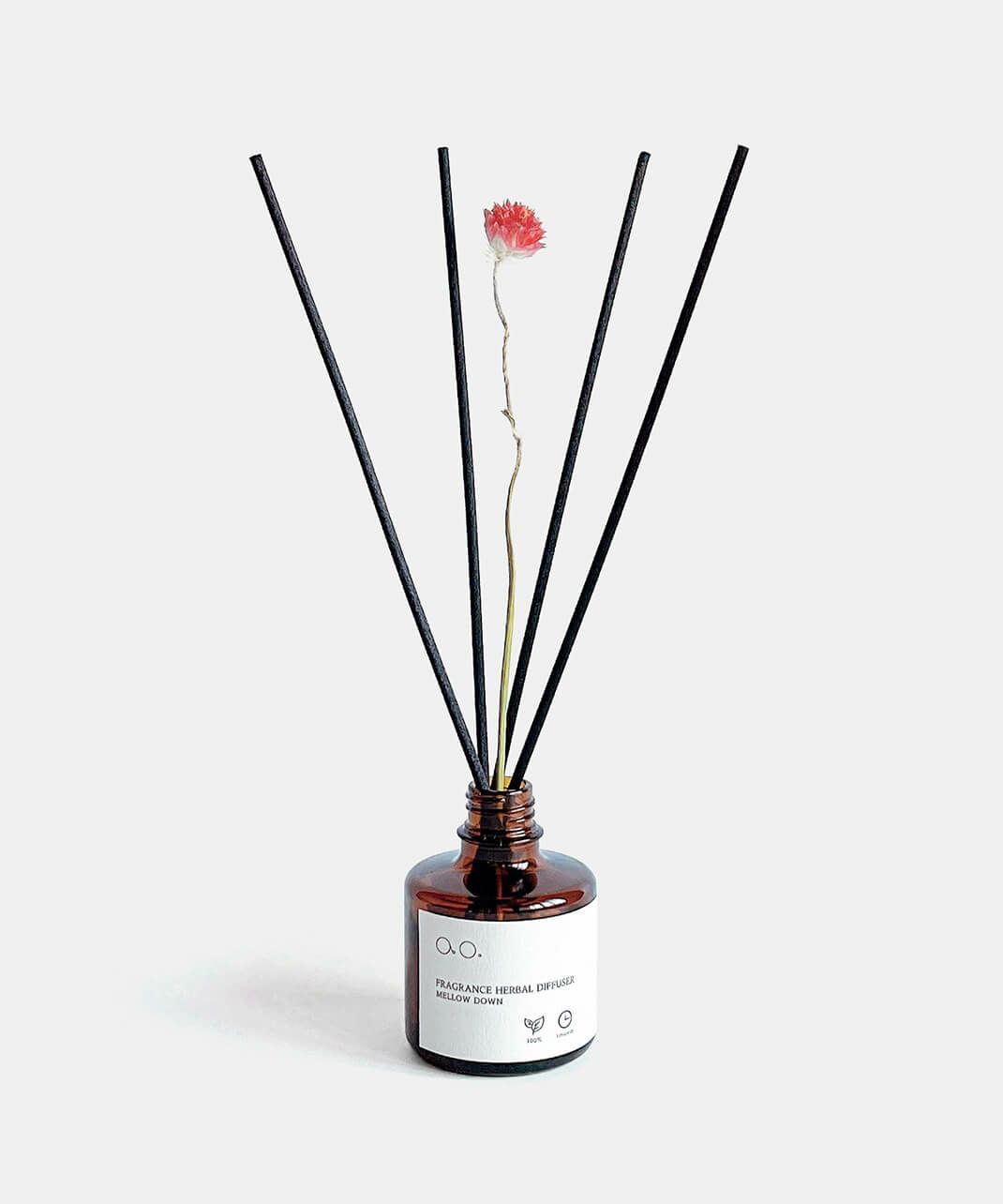 1輪挿しの美しいハーブの彩りと、天然精油100%で調香した、自然ならではの優しくて深みのある香りを日常にお届けします。心を穏やかに導いてくれるような天然由来成分100%なハンドメイドディフューザーです。付属のドライフラワーは、香りだけではなくインテリアとしてもお楽しみいただけます。