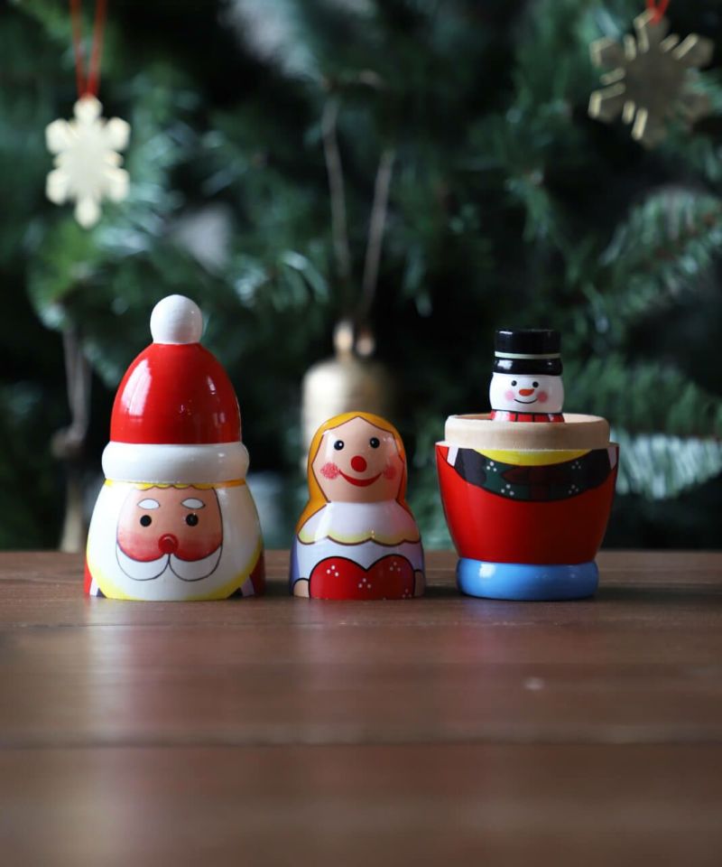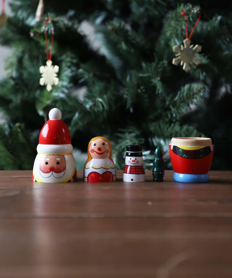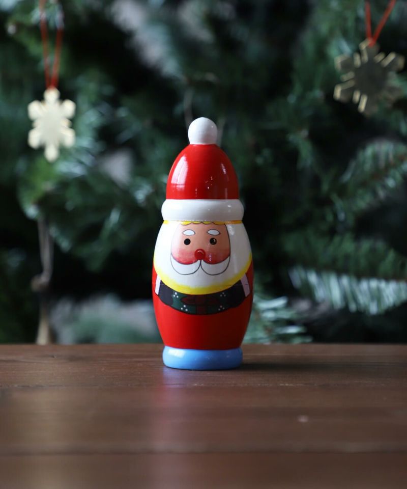 サンタクロースの本場でもあるフィンランド、北欧をイメージしたサンタマトリョーシカ。 棚上に並べるだけで一気にクリスマスモードに。年に一度のホリデーシーズンを盛り上げてくれる愛らしいデザインのオブジェです。