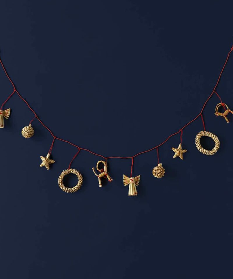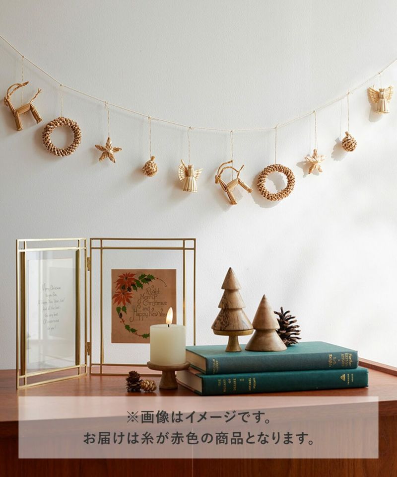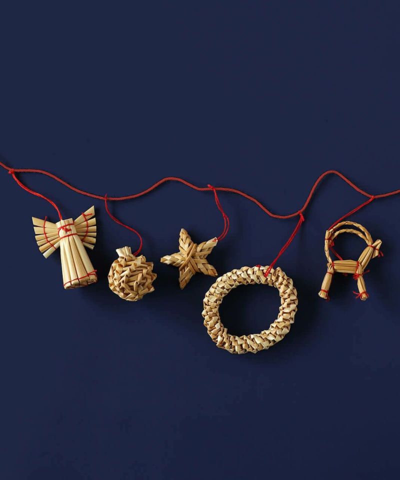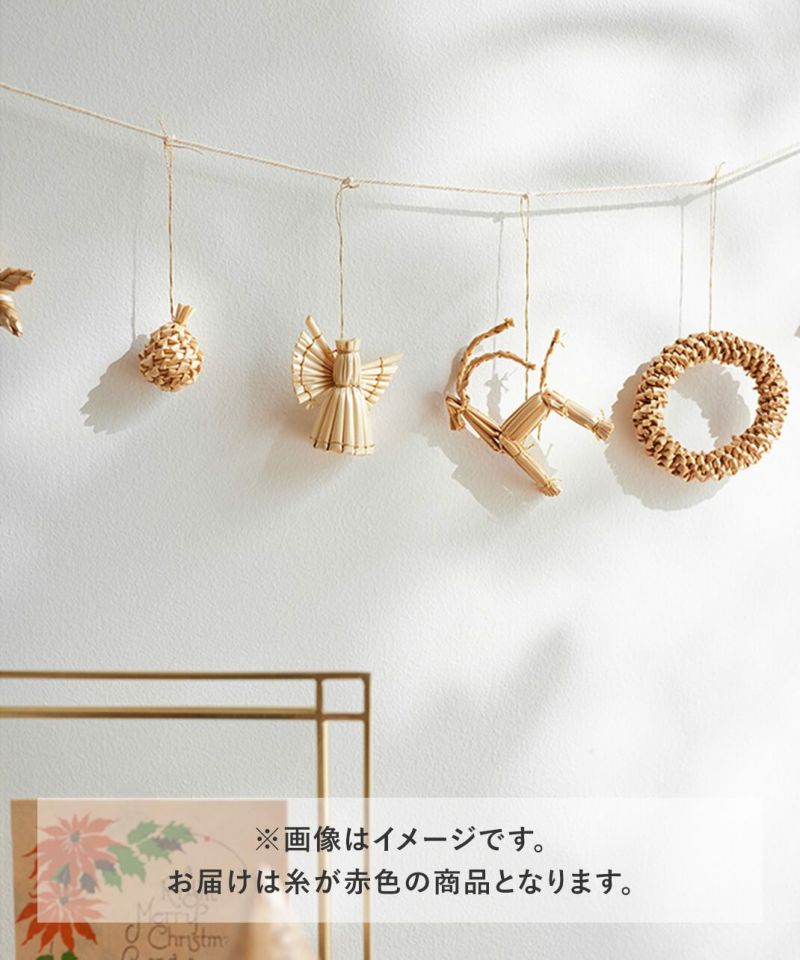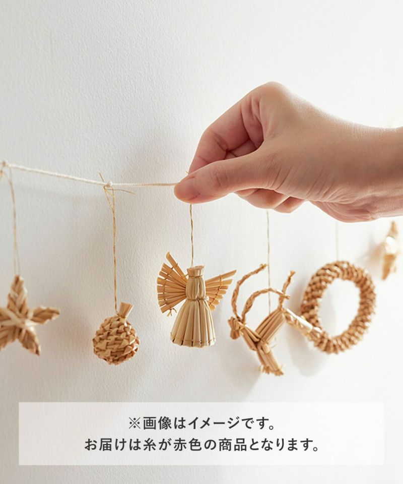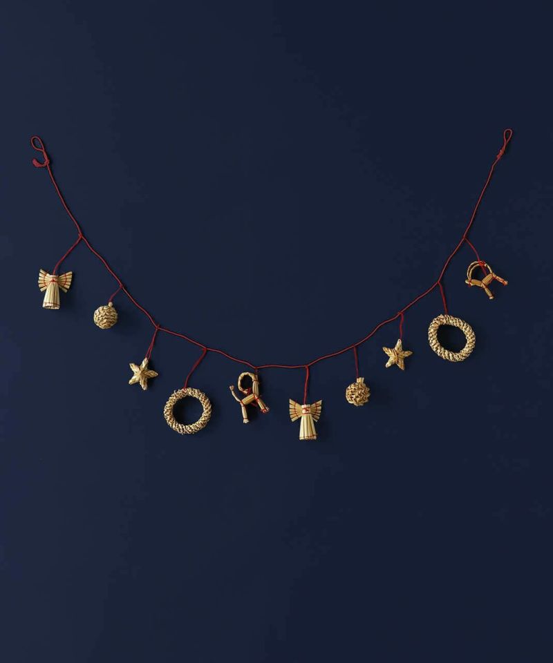 ストロー(麦わら)で作られたガーランド。 ひとつひとつ職人の手でハンドメイドされているのでそれぞれに表情があるような愛らしさが魅力です。 飾るだけでなく、ツリーに巻きつけて使ったり、紐からほどいてオーナメントとしても使っていただけます。 プレゼントのラッピングに添えて、大切な人への贈り物としても。