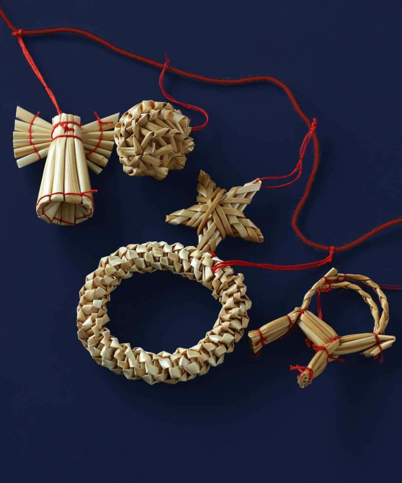 ストローは麦わらなどの植物繊維からできています。自然素材から作られているため、自然の美しさや温かみを感じさせる見た目が特徴です。 職人の手作業で編まれている為、ひとつひとつ個体差があります。月日を重ねるごとに飴色に変化していくので、毎年違う表情を楽しむことができます。