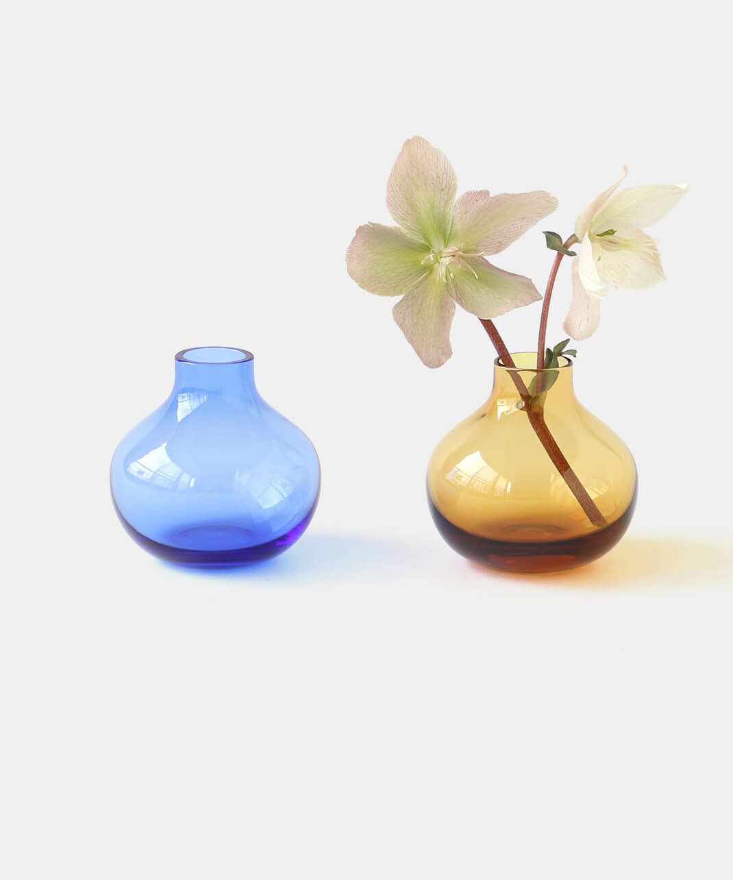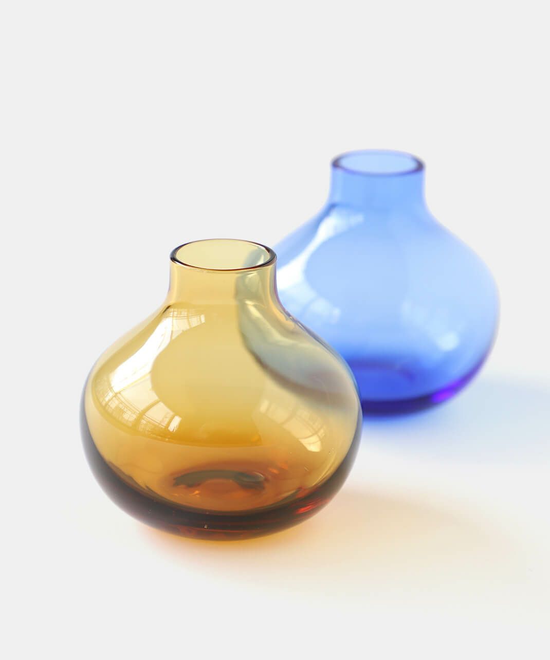 落ち着いた色合いのアンバーと、鮮やかなロイヤルブルーが目を引くフラワーベース。 庭で咲いた小さな花や、公園に咲いてた小さな花などそっと一輪だけ飾っても絵になる花瓶は、小ぶりながらもしっかりと存在感もあり日常生活に彩を加えてくれるアイテムです。