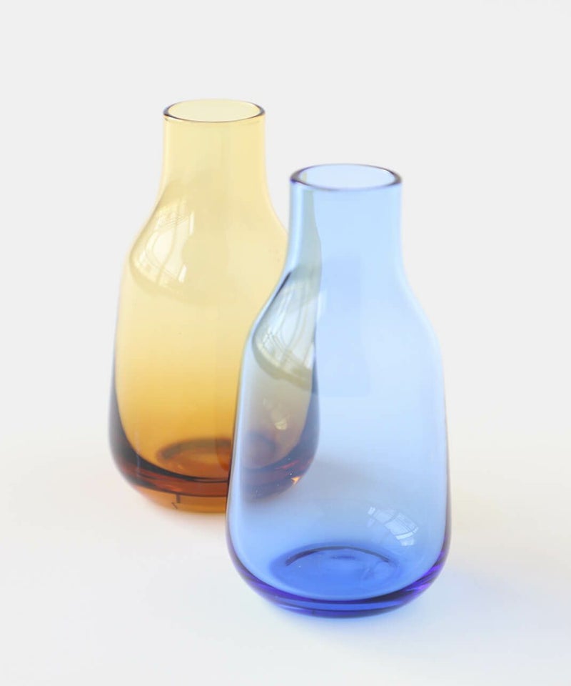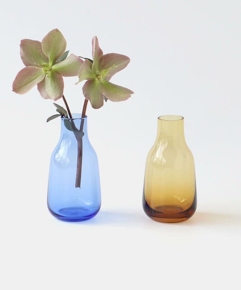 落ち着いた色合いのアンバーと、鮮やかなロイヤルブルーが目を引くフラワーベース。 庭で咲いた小さな花や、公園に咲いてた小さな花などそっと一輪だけ飾っても絵になる花瓶は、小ぶりながらもしっかりと存在感もあり日常生活に彩を加えてくれるアイテムです。