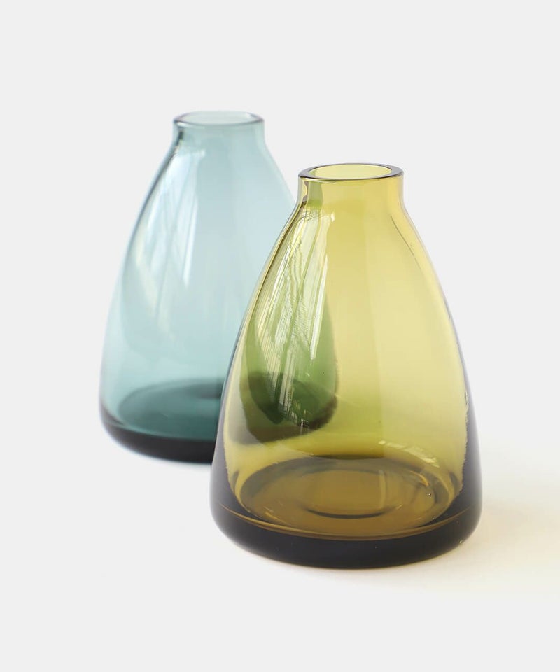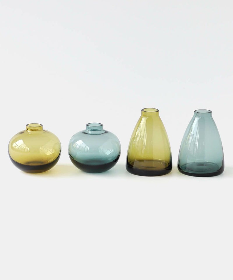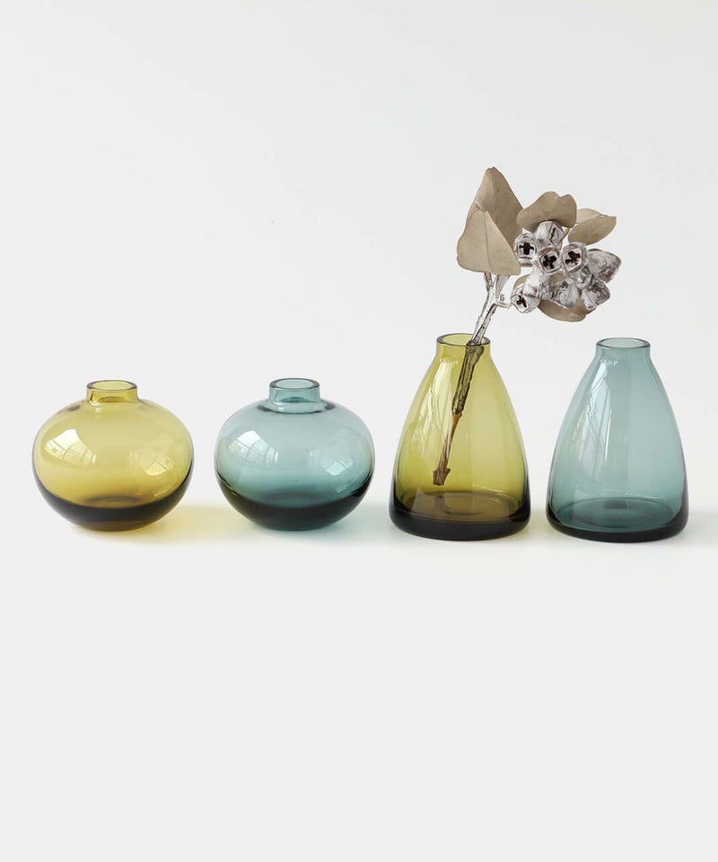 小さめサイズで、ぽってりとした厚みのあるガラスが愛らしいフラワーベース。