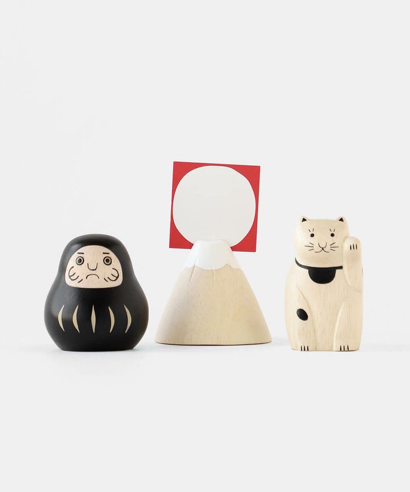 日本に伝わる縁起がよいモノ「えんぎもん」をモチーフにデザイン。背中や背面に切れ込みがありカードスタンドとしても使えます。