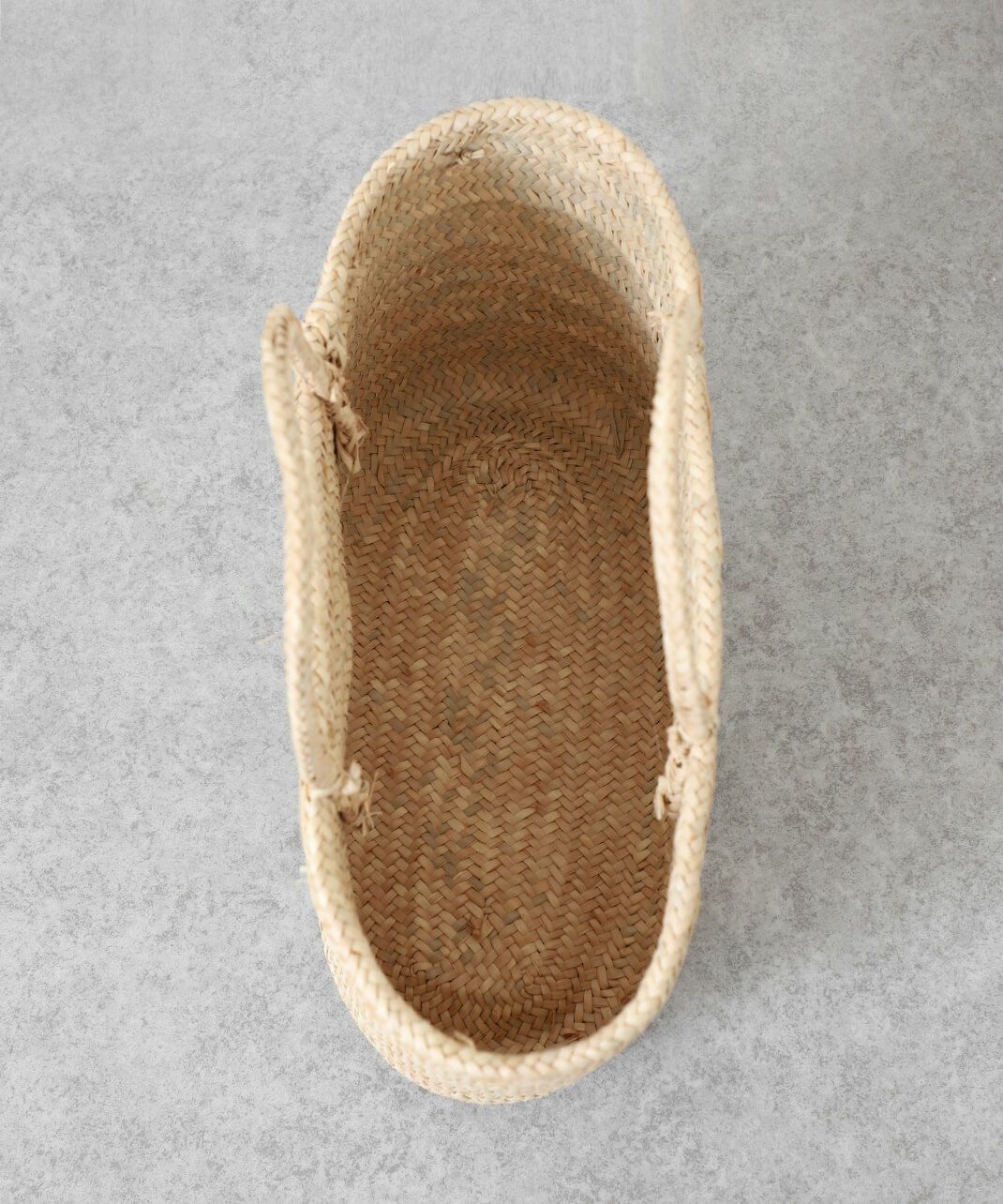 ハンドルにも本体と同じ椰子の葉を使用し、統一感のある仕上がりになっています。