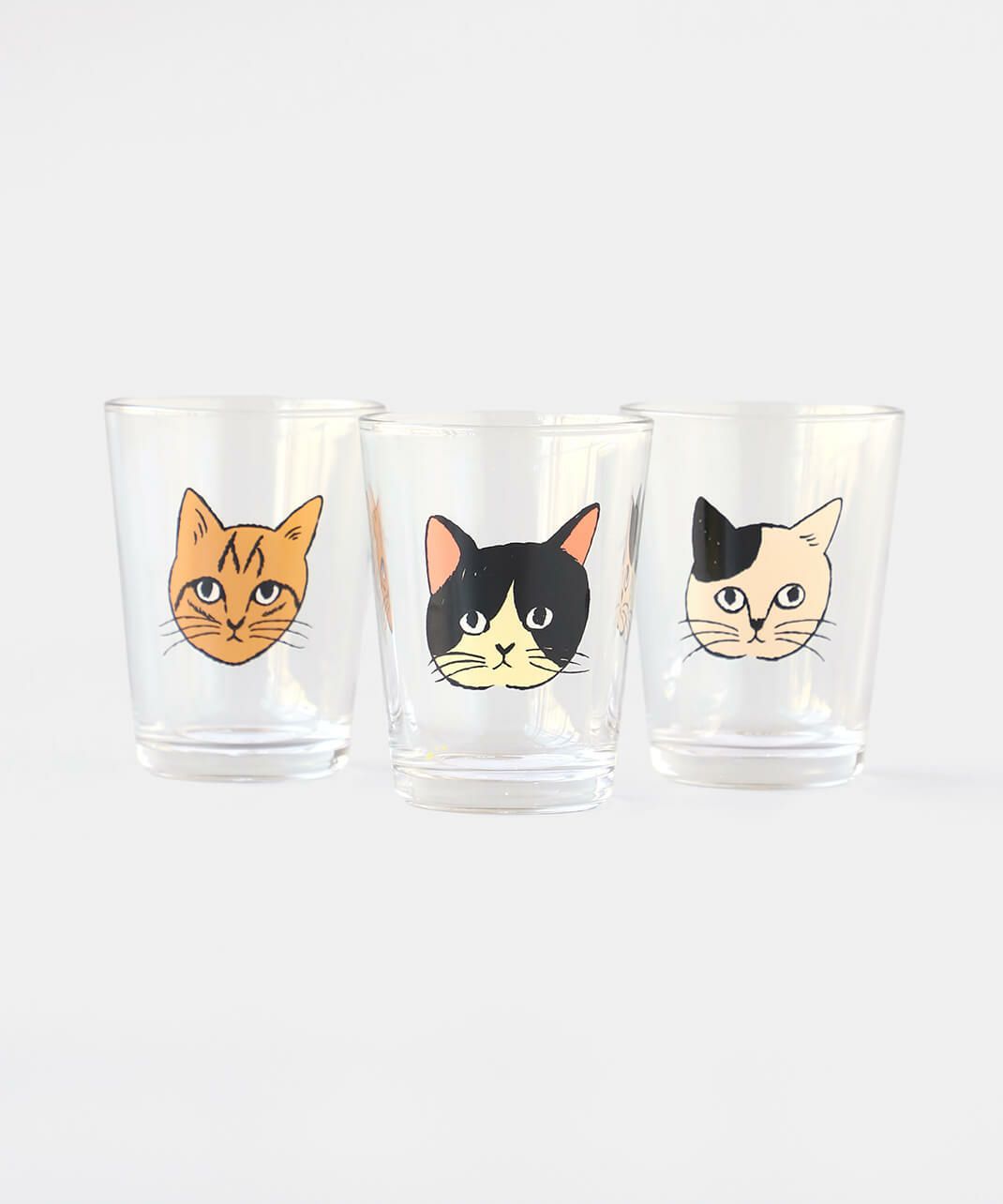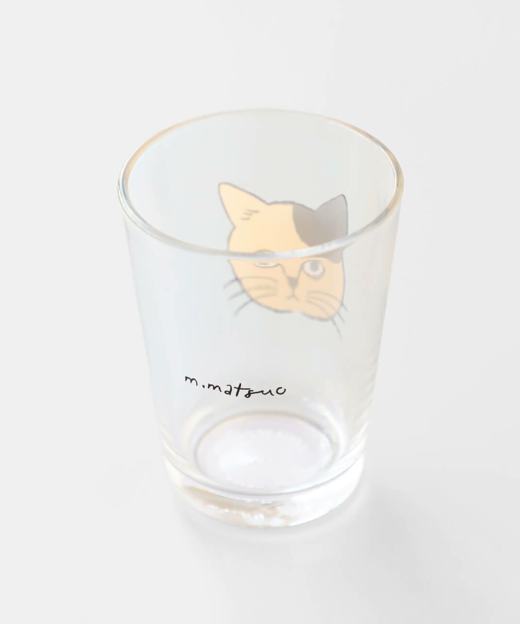 松尾ミユキさんの描く、じっと見つめるネコたちのグラスです。小さめサイズで集めたくなる愛らしさです。